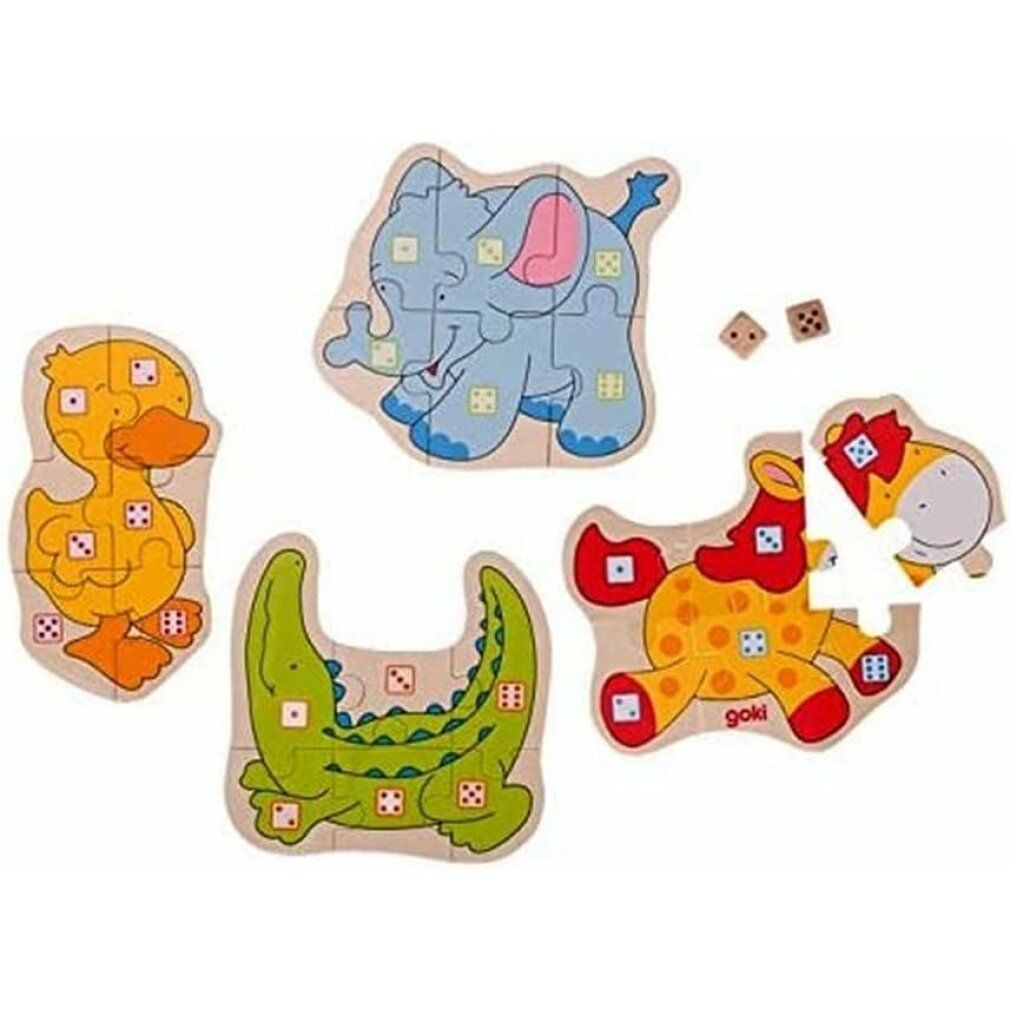 GOKI Puzzlespiel mit Würfeln Tiere