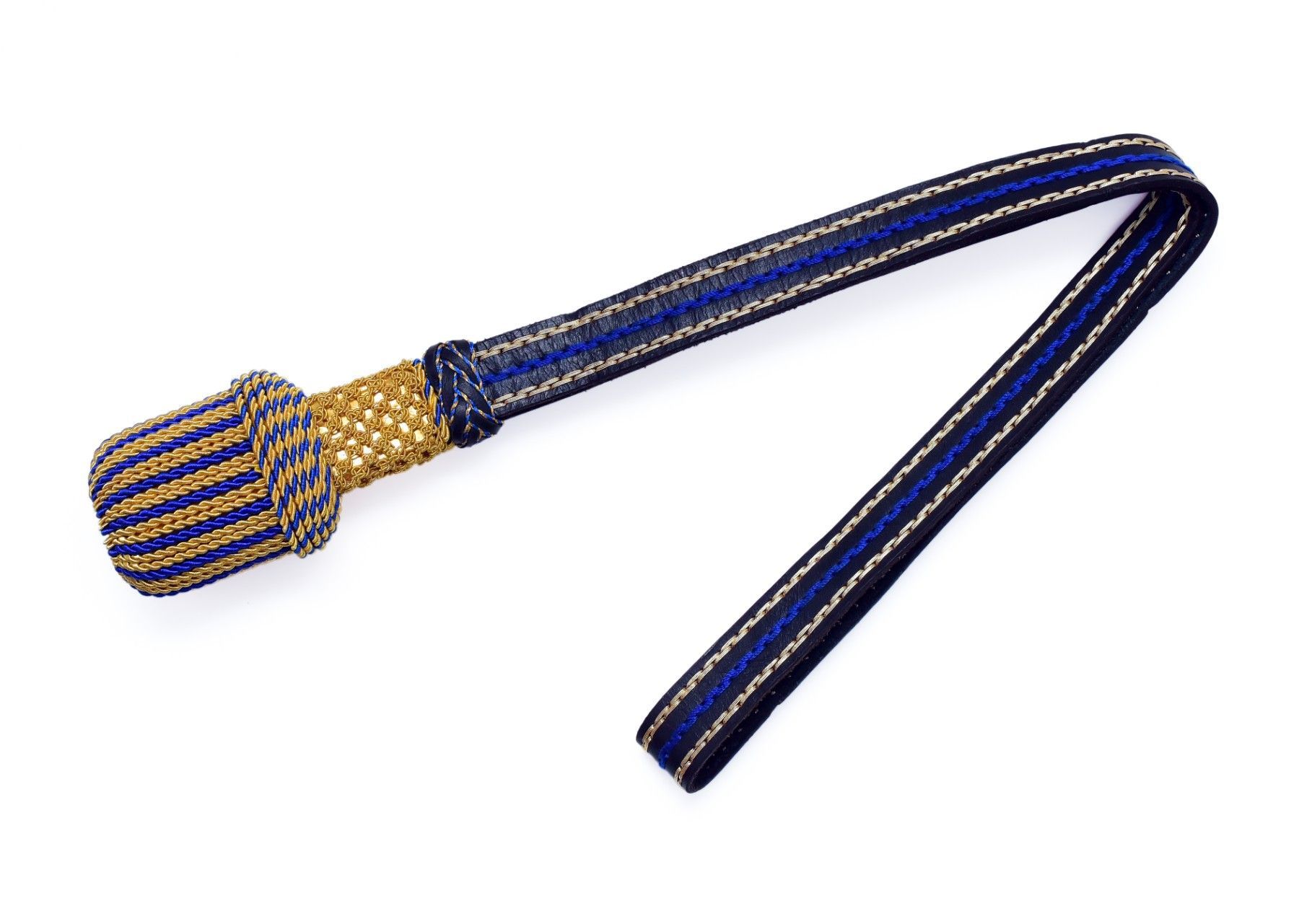 gold/blau Portepee mit Lederriemen Knot - ovale Quaste (grosse Ausführung)