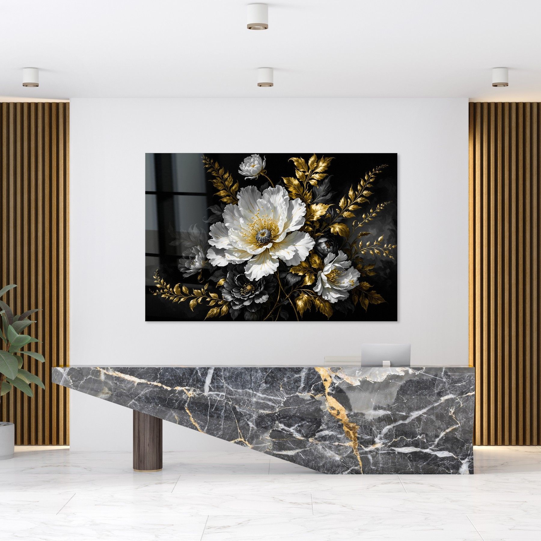 Wandbild Moderne Luxus Golden Blättern und Blumen Acrylglas , Poster , Leinwand