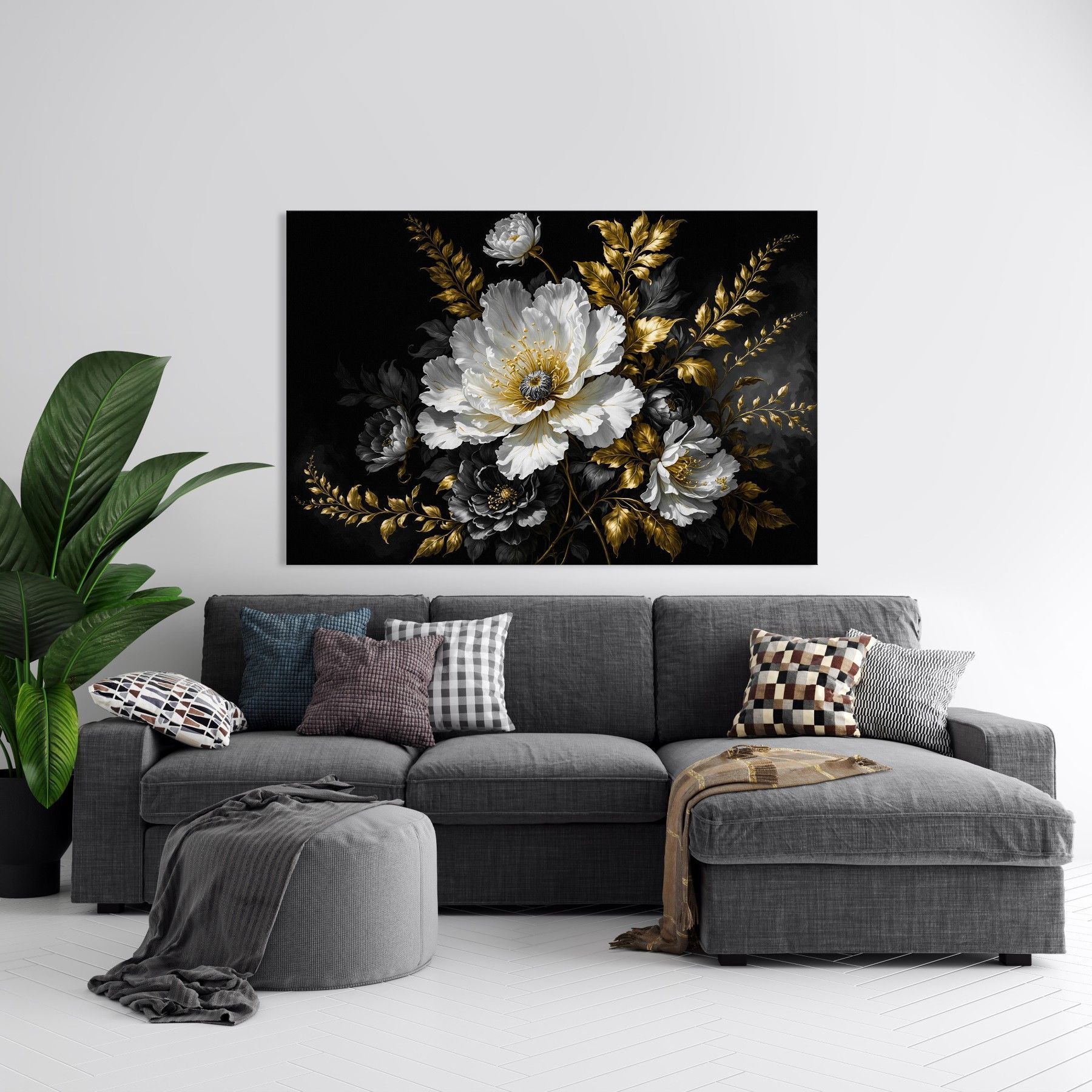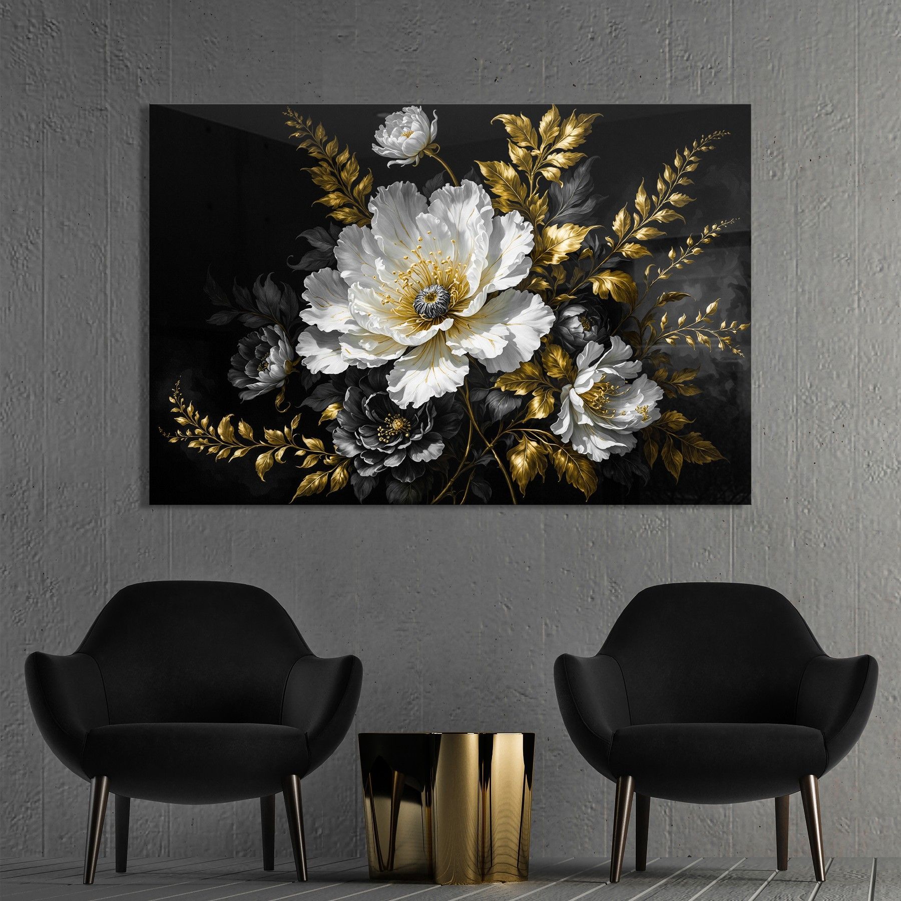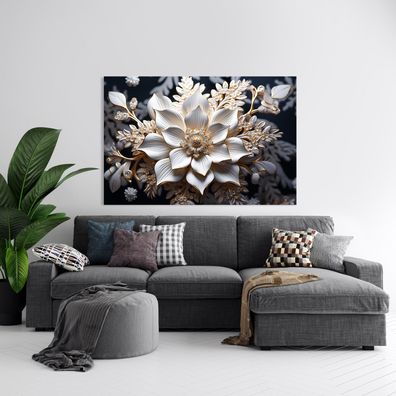 Wandbild Luxus Blumen mit Gold, Kunst Bild, Poster, Leinwand oder Acrylglas