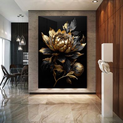 Luxus Blume Bild Kunst Gold, Wandbild in Leinwand, Acrylglas oder Poster