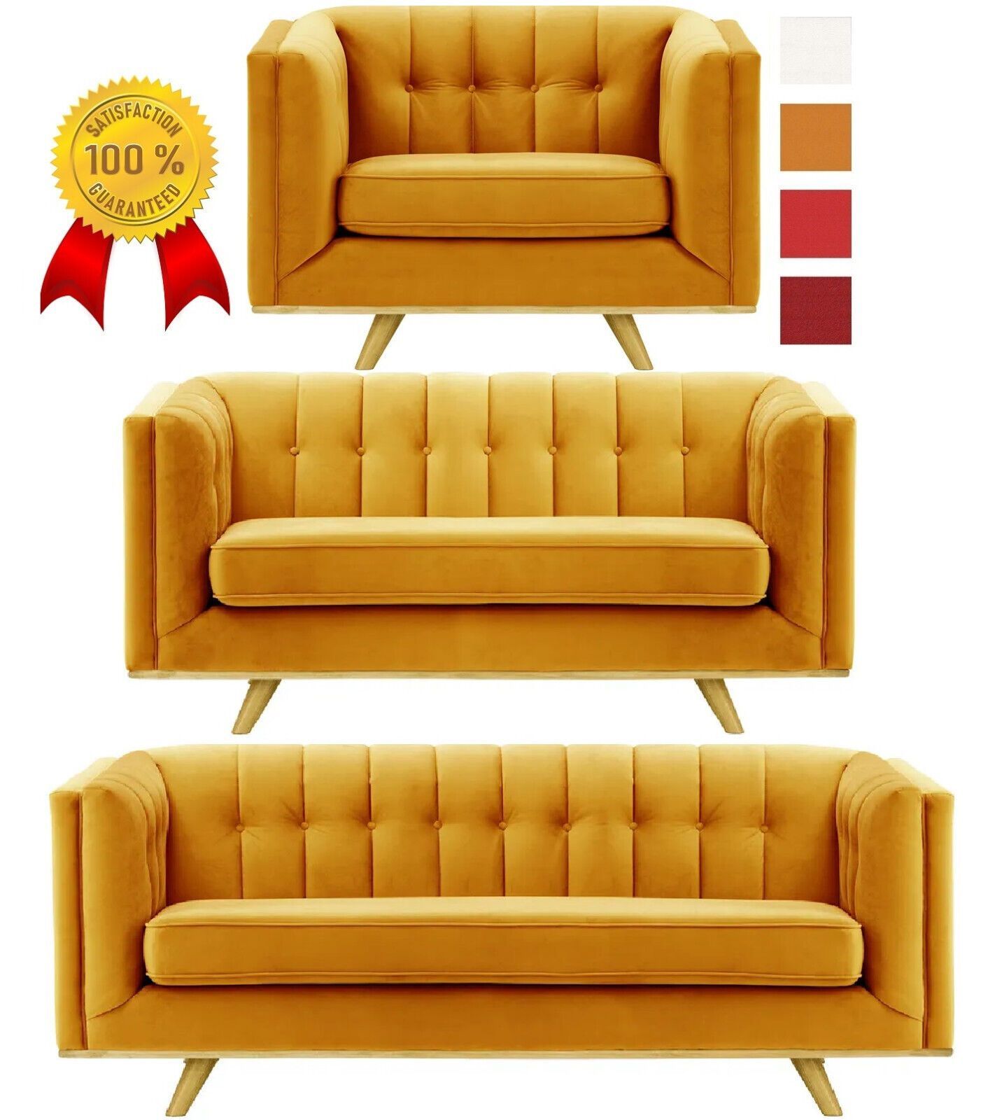 GOLD GELB SAMT SET 1 + 2 + 3 Sofagarnitur COUCH SESSEL 3 SITZER SOFA Wohnlandschaft