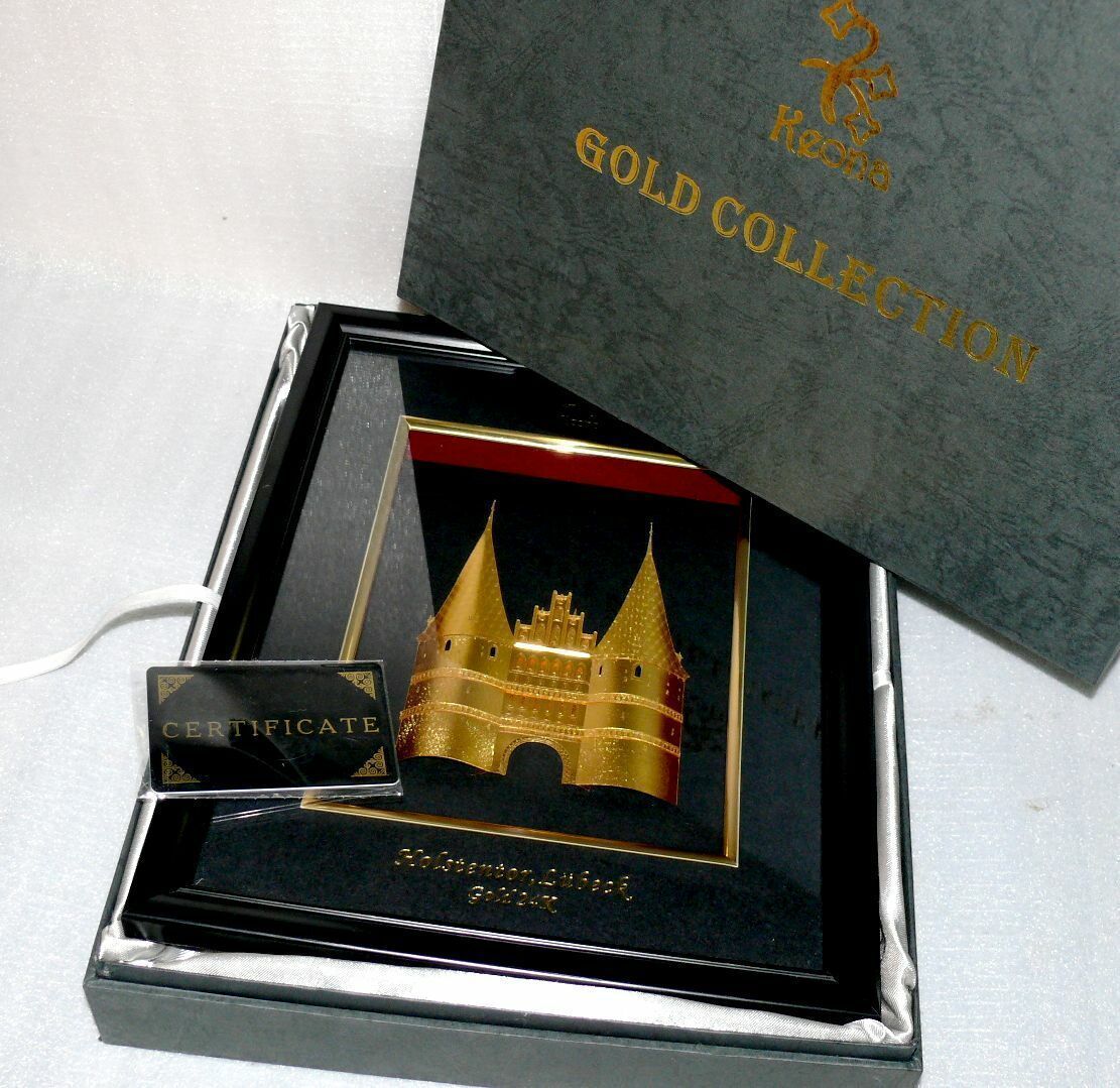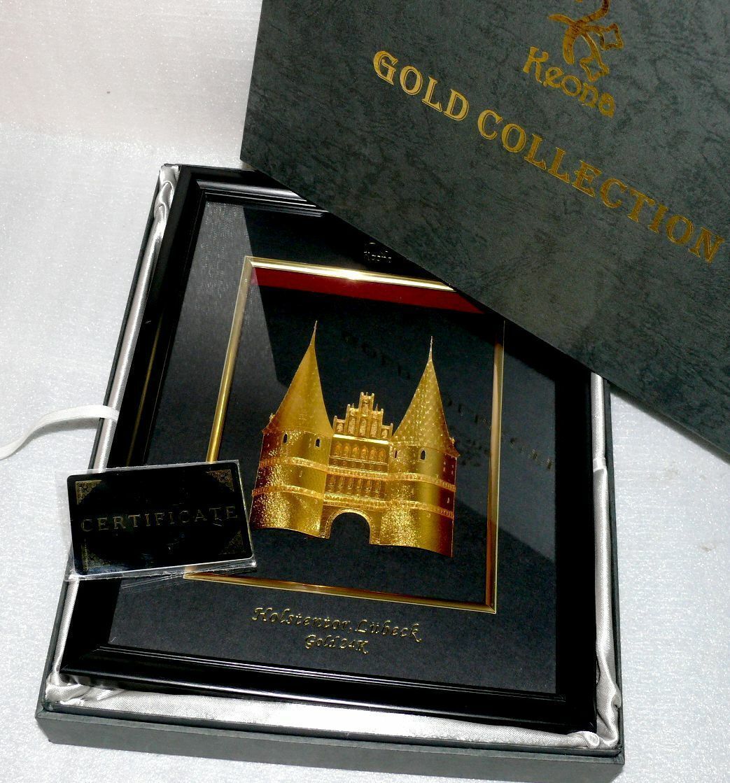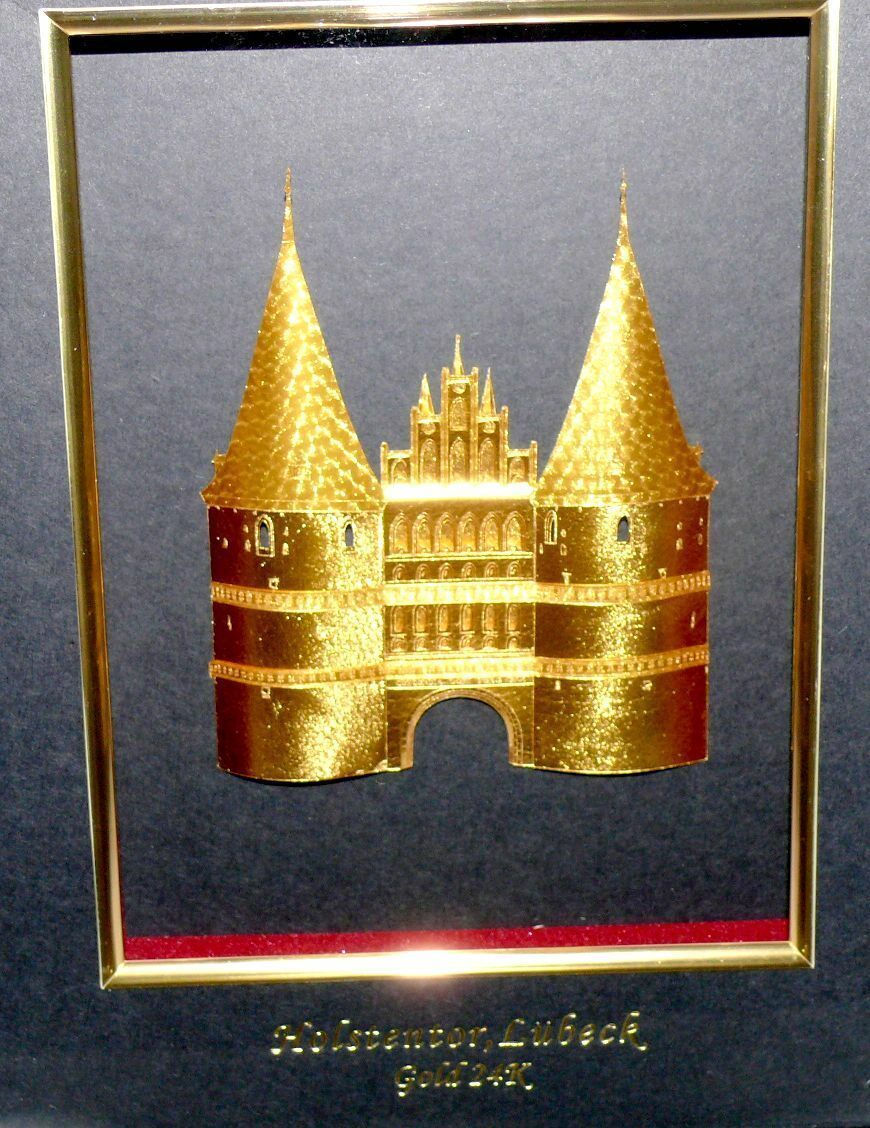 Gold Kollektion Deko Gemälde Holstentor Lübeck Rahmen Bild Zertifikat 24K Gold
