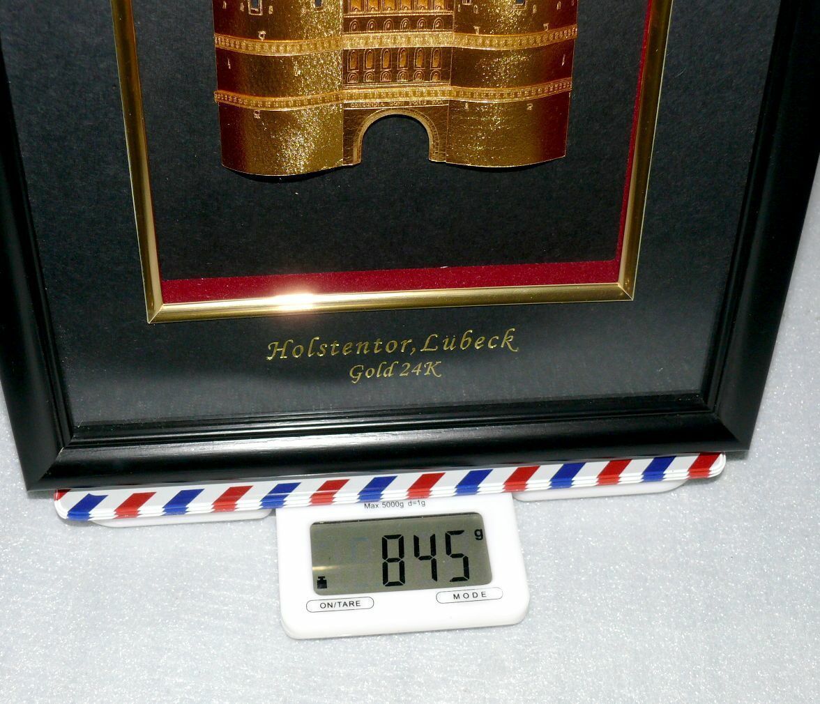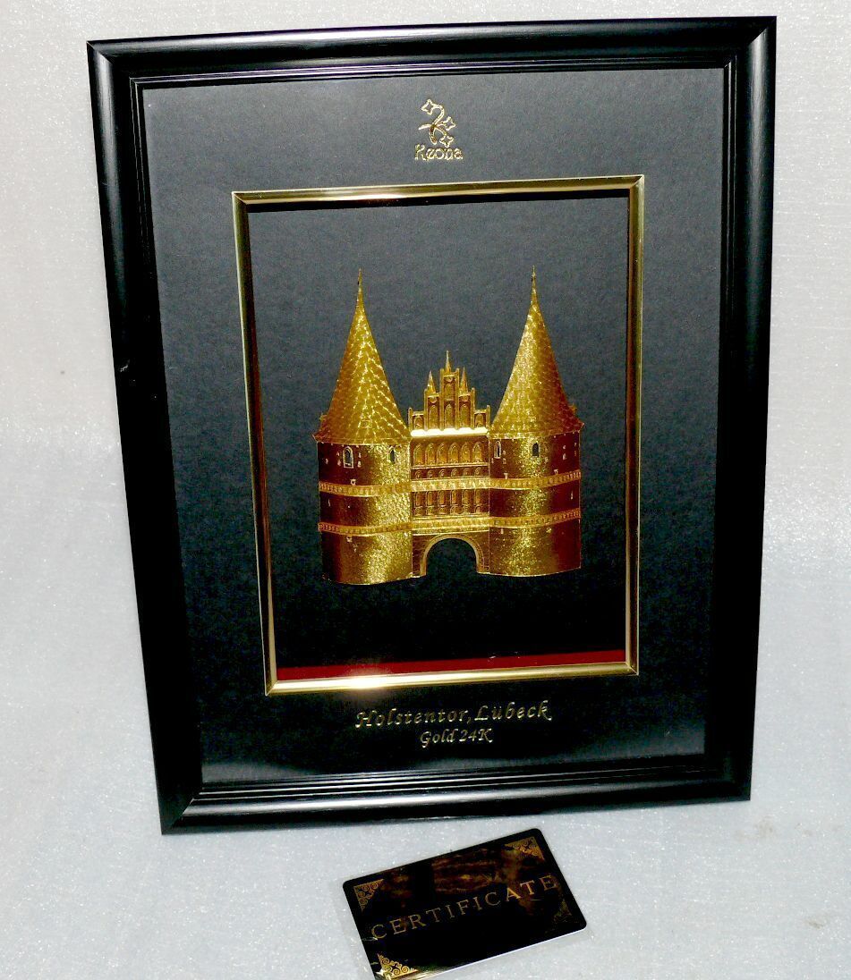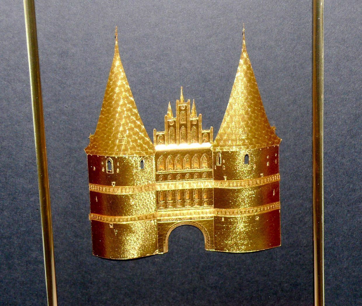 Gold Kollektion Deko Gemälde Holstentor Lübeck Rahmen Bild Zertifikat 24K Gold