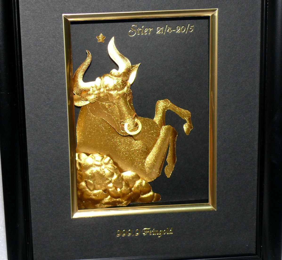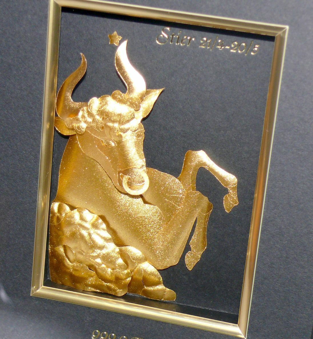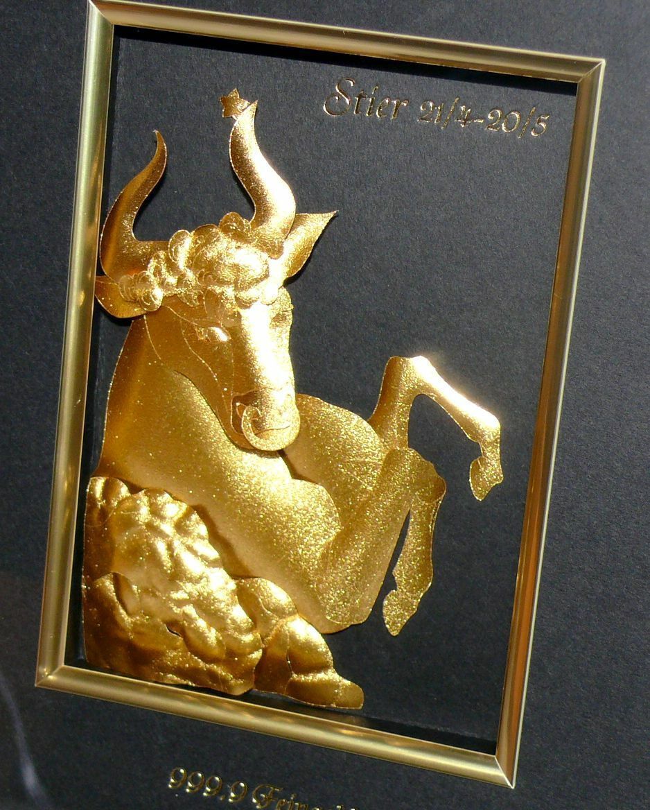 Gold Kollektion Deko Gemälde Horoskop Stier Rahmen Bild Zertifikat 24K Gold