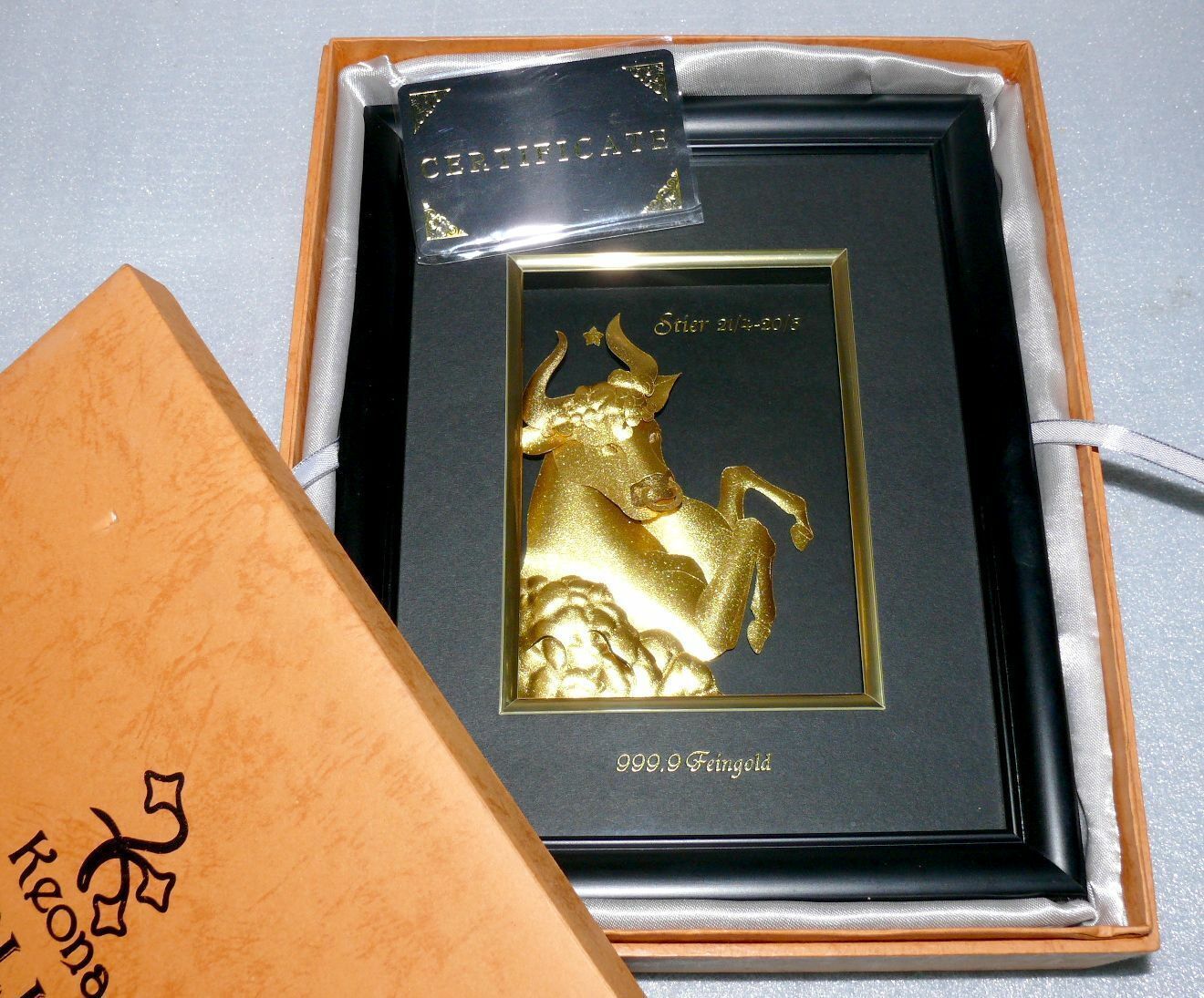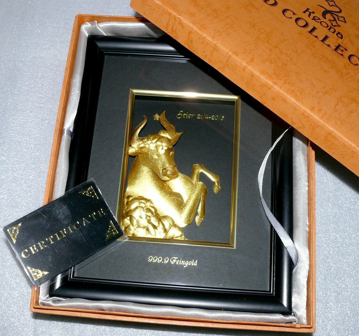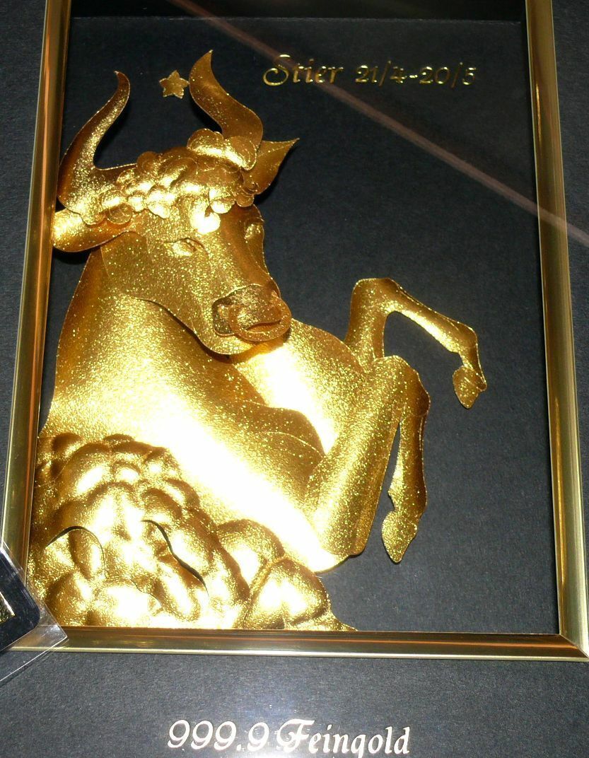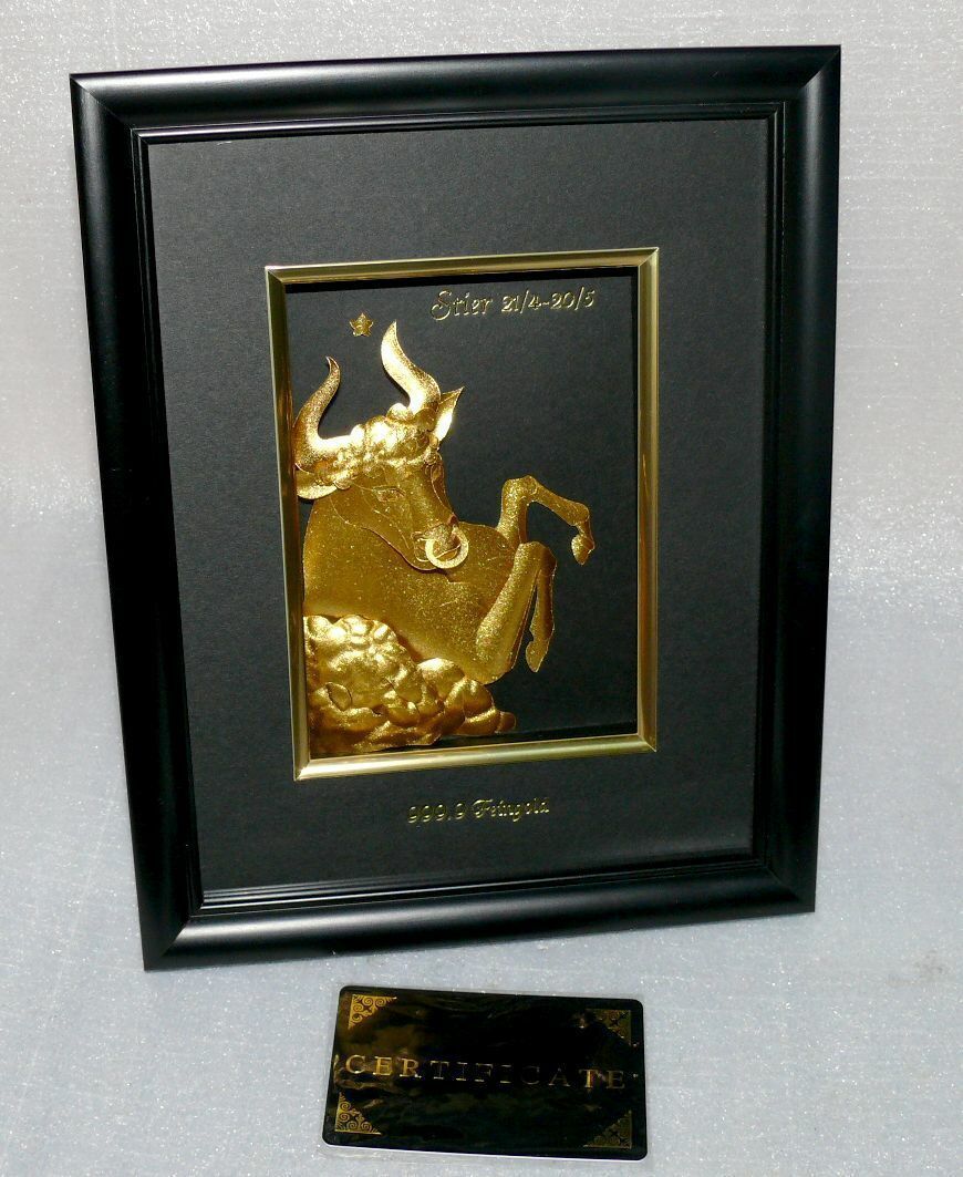 Gold Kollektion Deko Gemälde Horoskop Stier Rahmen Bild Zertifikat 24K Gold