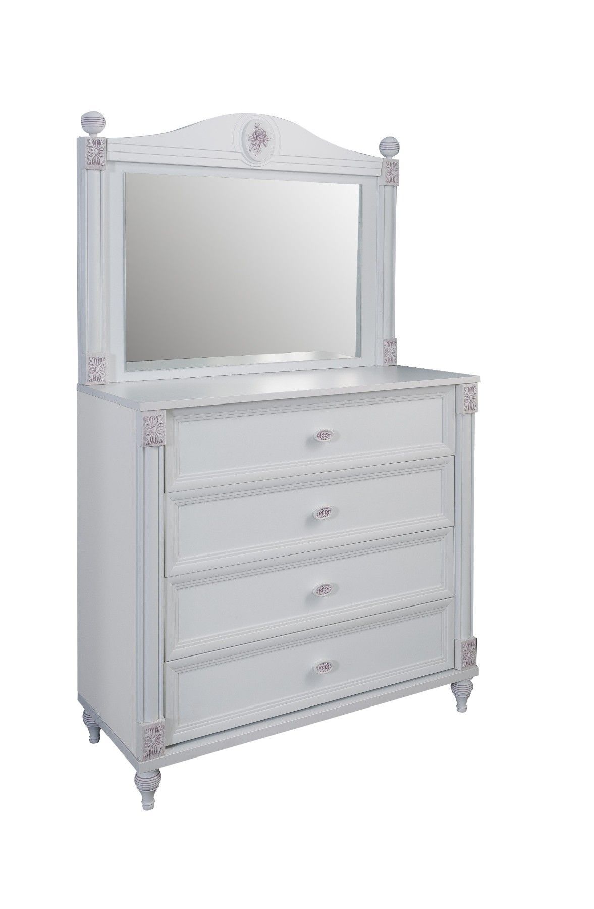 Aus dem Kinderzimmer Gold 1x Kinderkommode Gold B H T: ca. 99x97x43 cm Material: Spanplatte 4x große Schubladen 1x Spiegel Gold B H T: ca. 99x75x22cm mit romantischen Verzierungen Die Ware wird zerlegt geliefert und muss montiert werden. Ohne Dekoration und Textilien Auf Wunsch ist auch ein individu