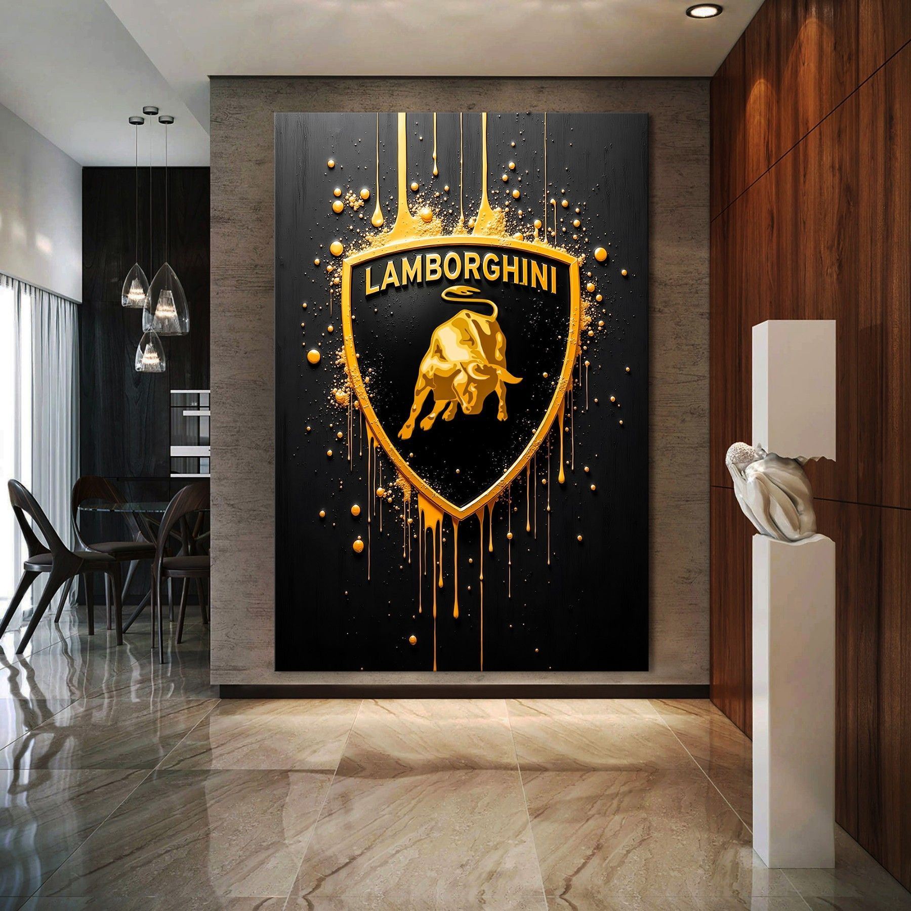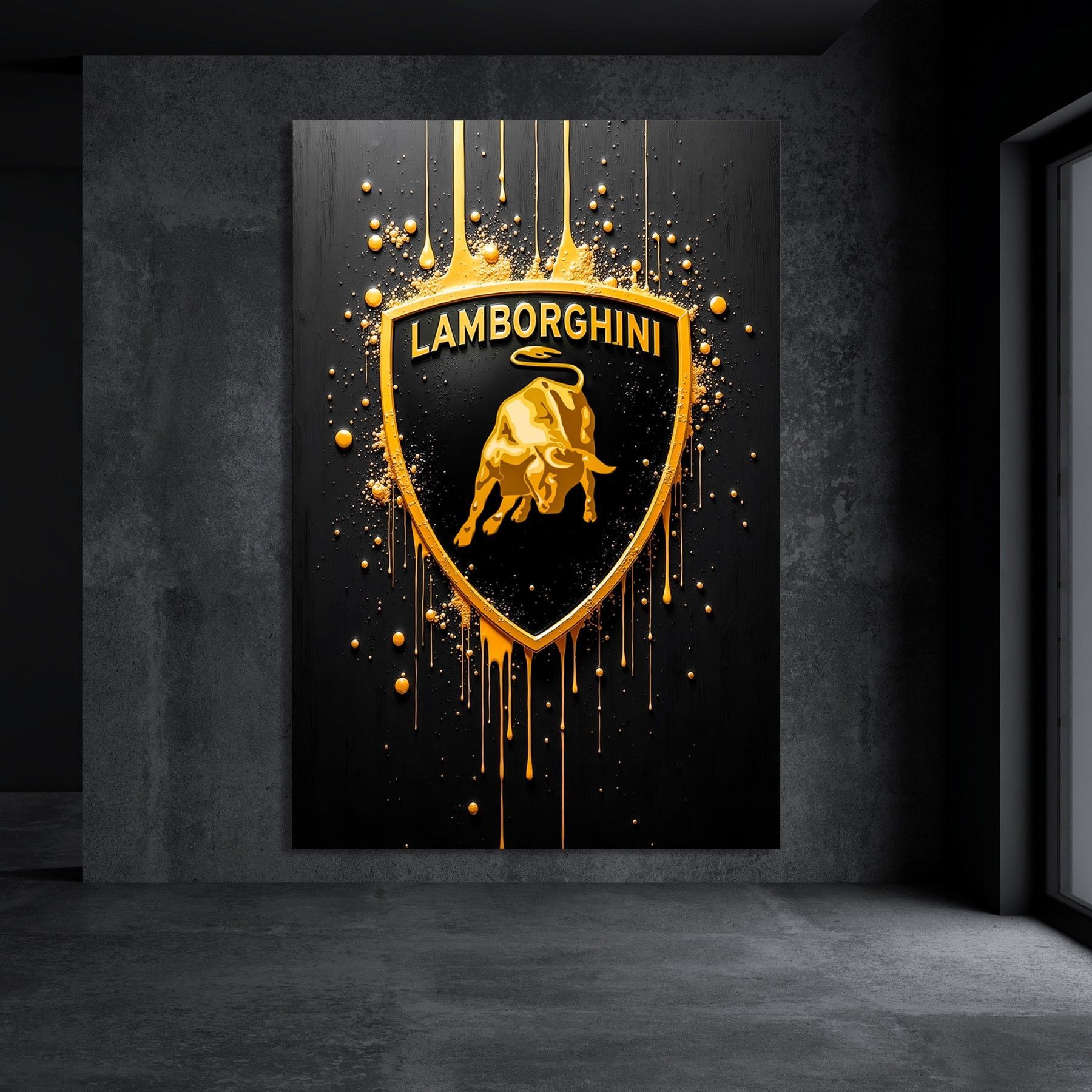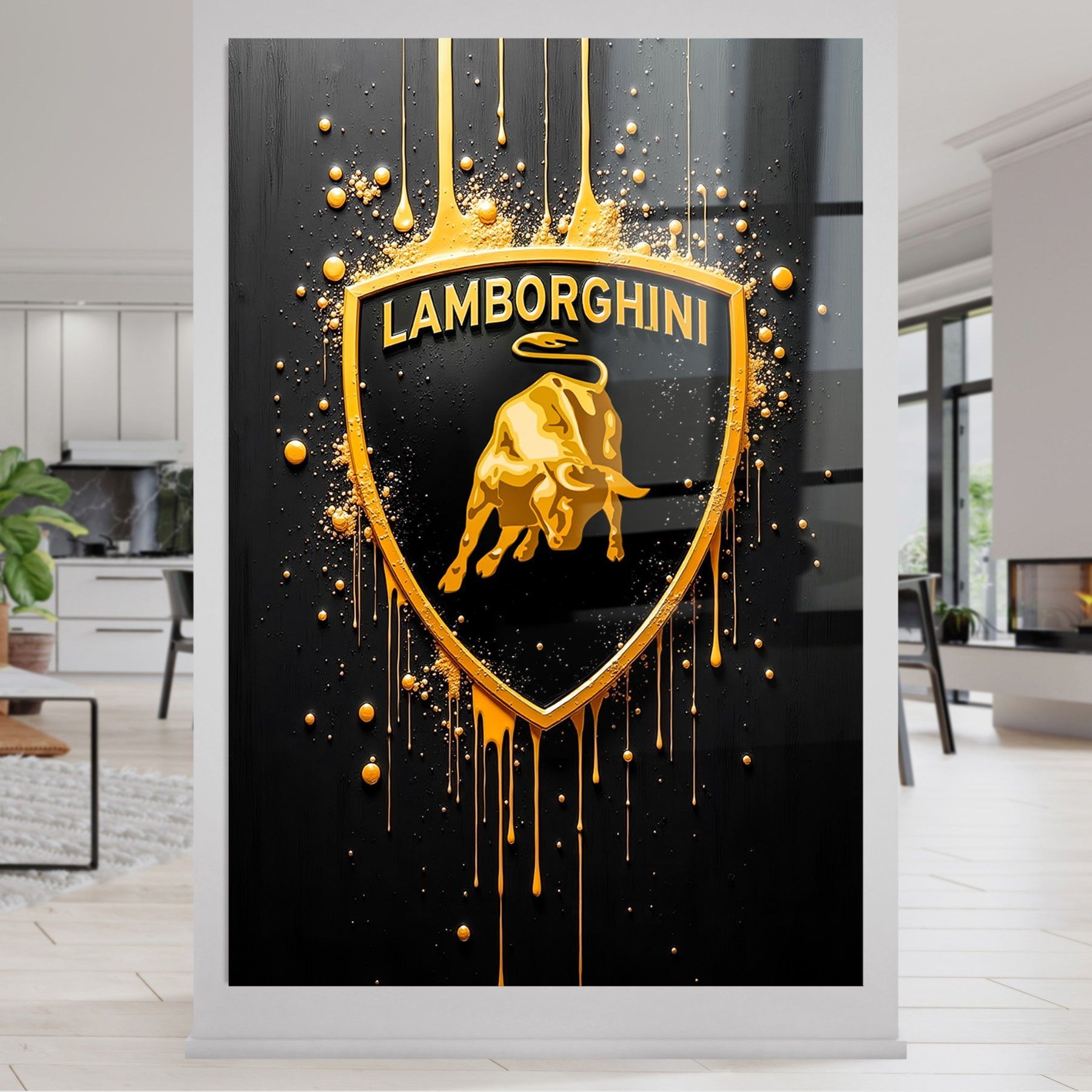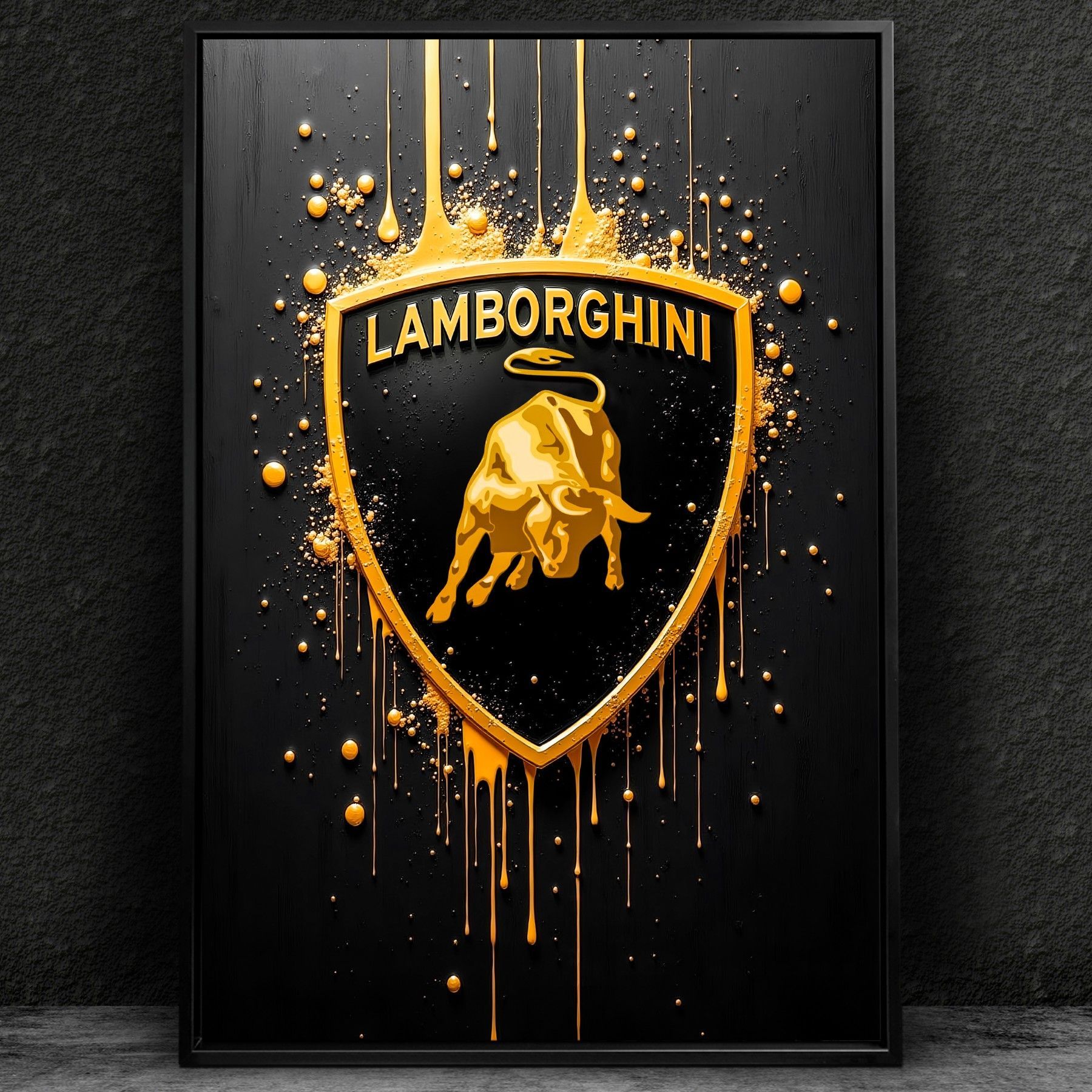 Gold Lamborghini Logo Luxus Auto Bild Kunst, Wandbild Leinwand, Acrylglas, Poster