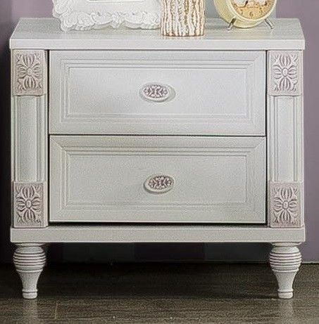 Aus dem Kinderzimmer Gold 1x Kinder Nachttisch Material: Spanplatte 2x Schubkasten mit romantischen Verzierungen B H T: ca. 54x49x43 cm Die Ware wird zerlegt geliefert und muss montiert werden. Ohne Dekoration und Textilien Auf Wunsch ist auch ein individuelles Angebot erhältlich Bei Fragen können S