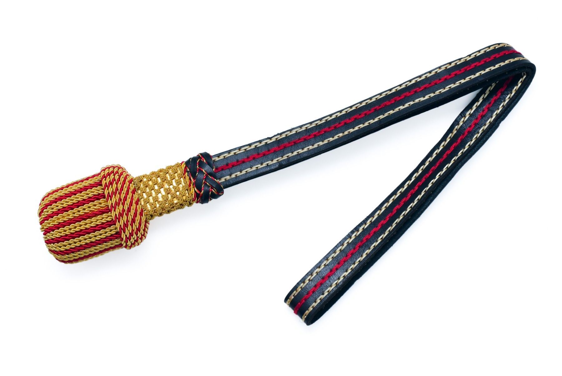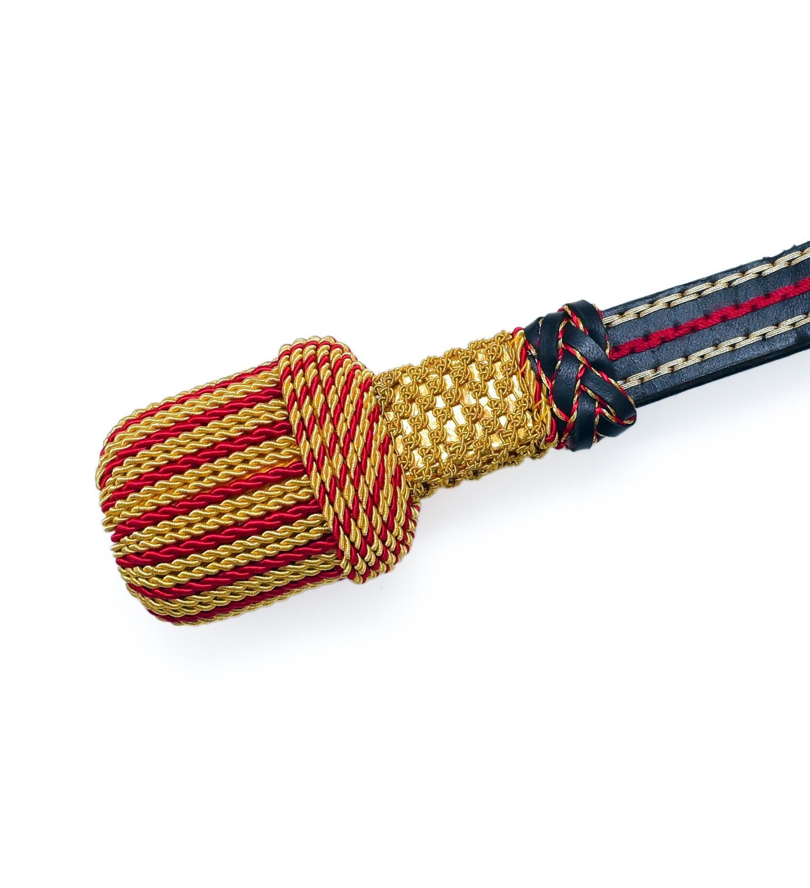 gold/rot Portepee mit Lederriemen Knot - ovale Quaste (grosse Ausführung)