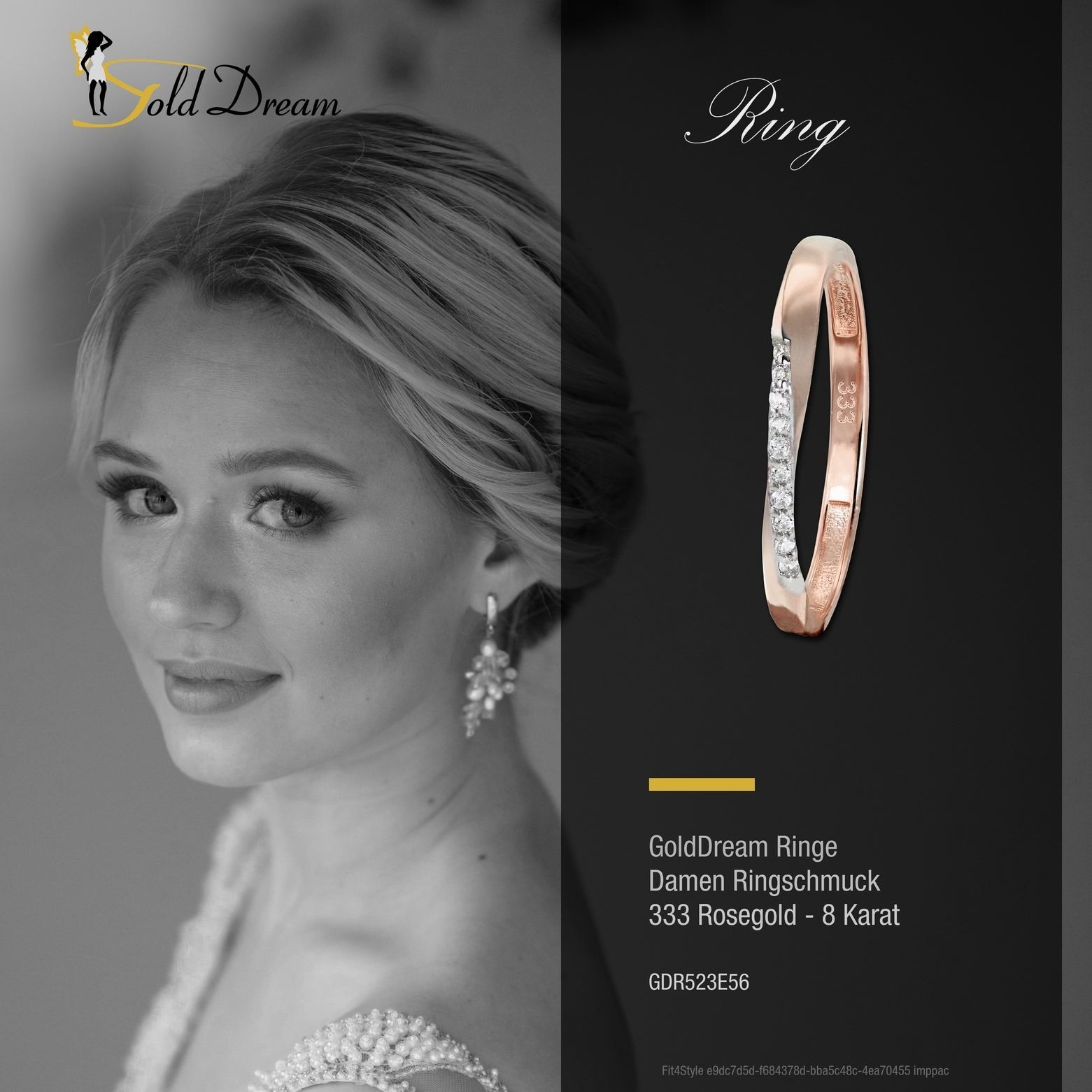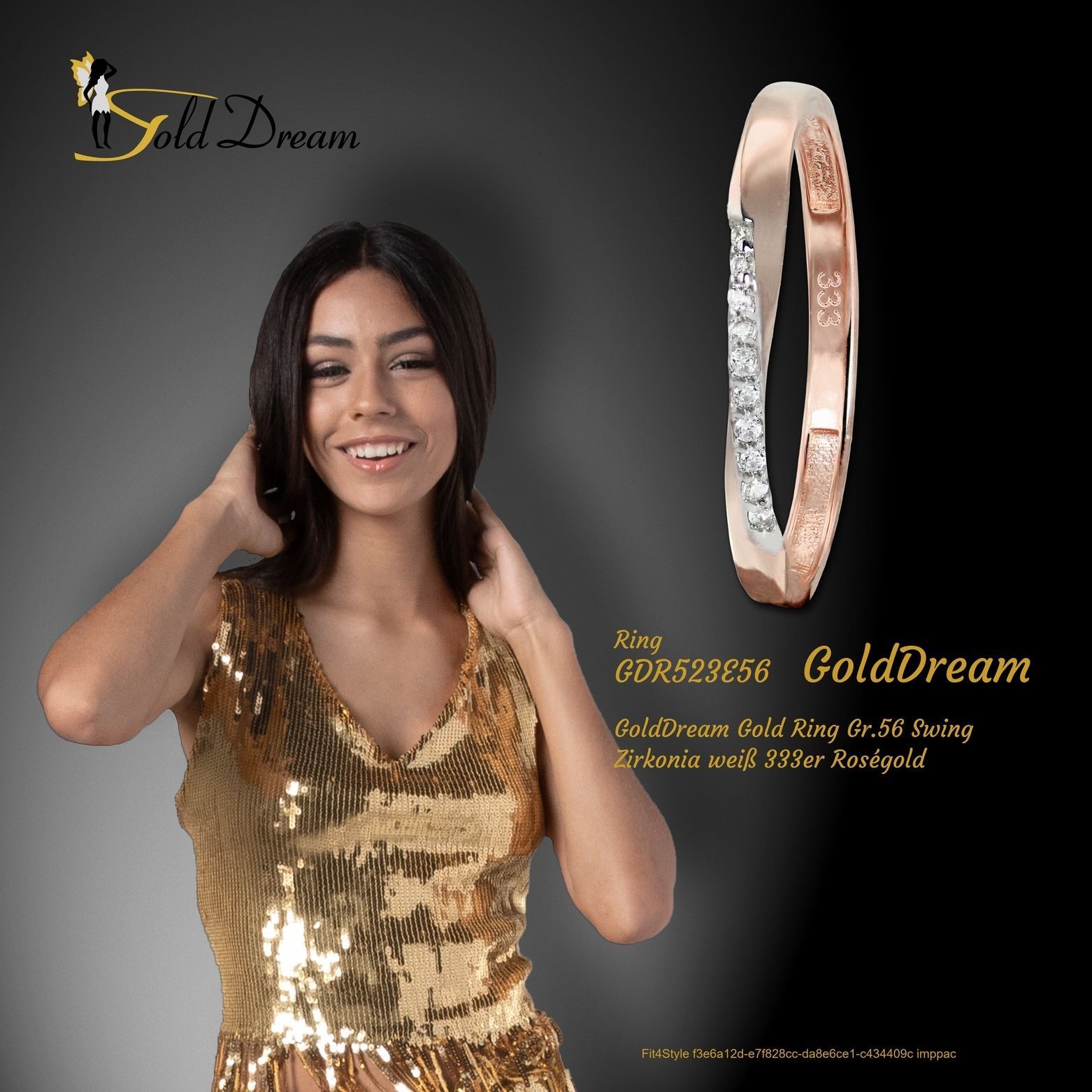 Ein schöner GoldDream Zirkonia Marken-Ring Swing mit der Bestellnummer GDR523E56 für Damen in der Farbe rose weiß. Der bezaubernde 333er rosegold Ring in der Größe 56 ist aus der GoldDream Ringschmuck-Kollektion.