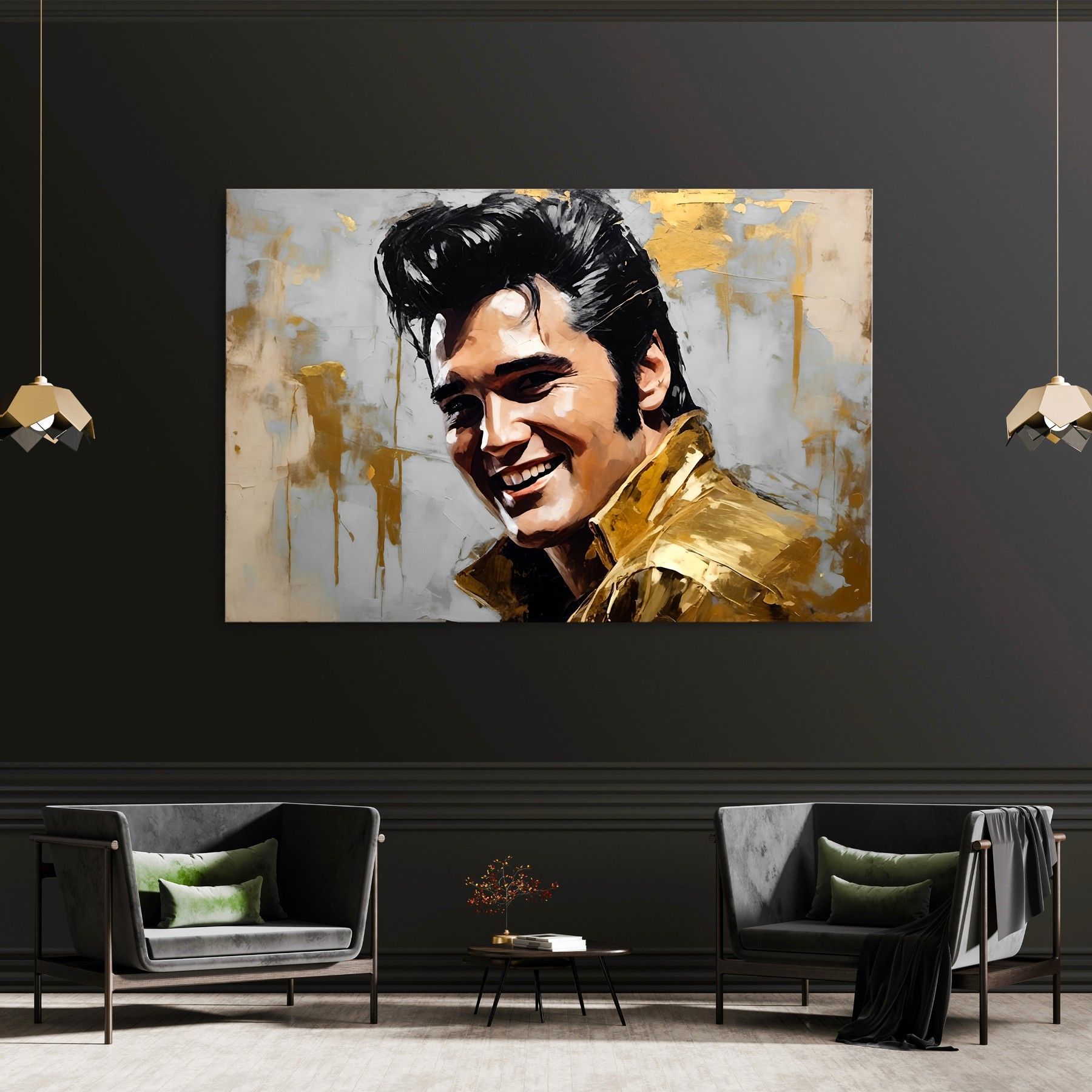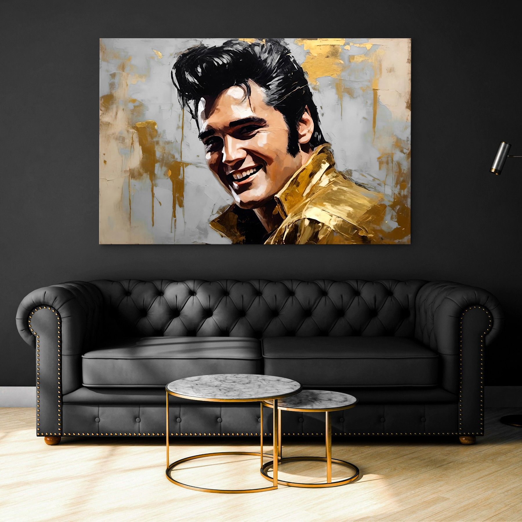 Golden Ink Elvis Presley Wandbild Leinwand , Acrylglas , Poster Modern Deko Kunst
