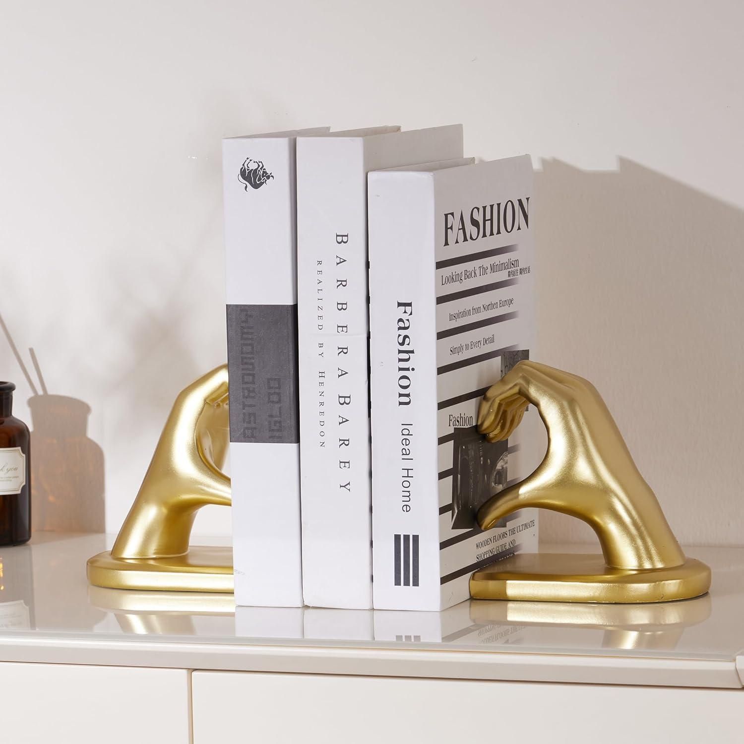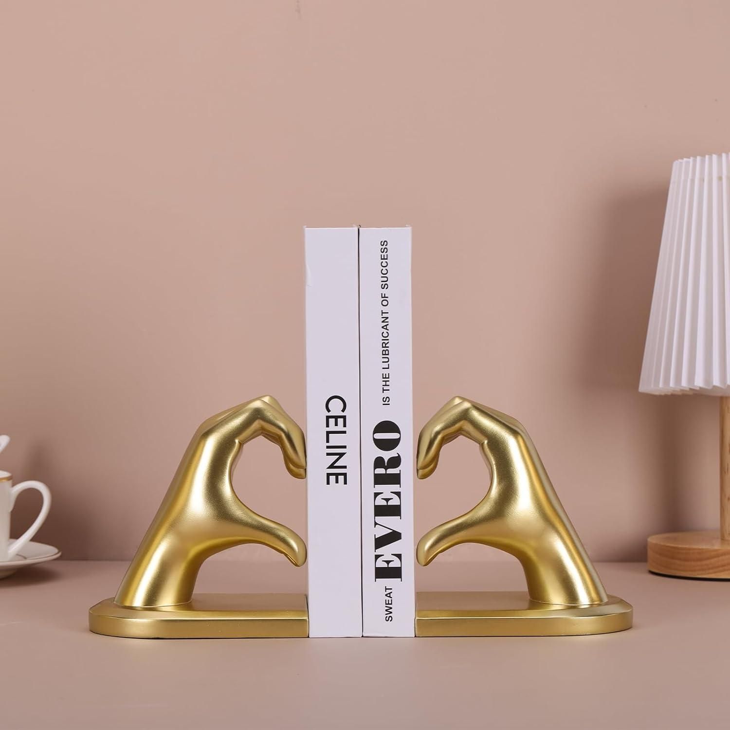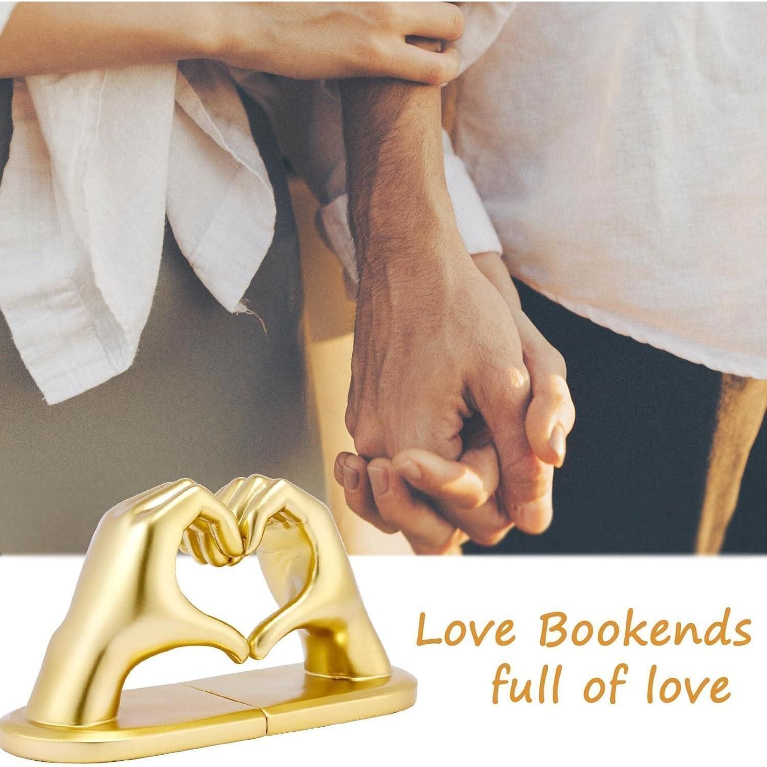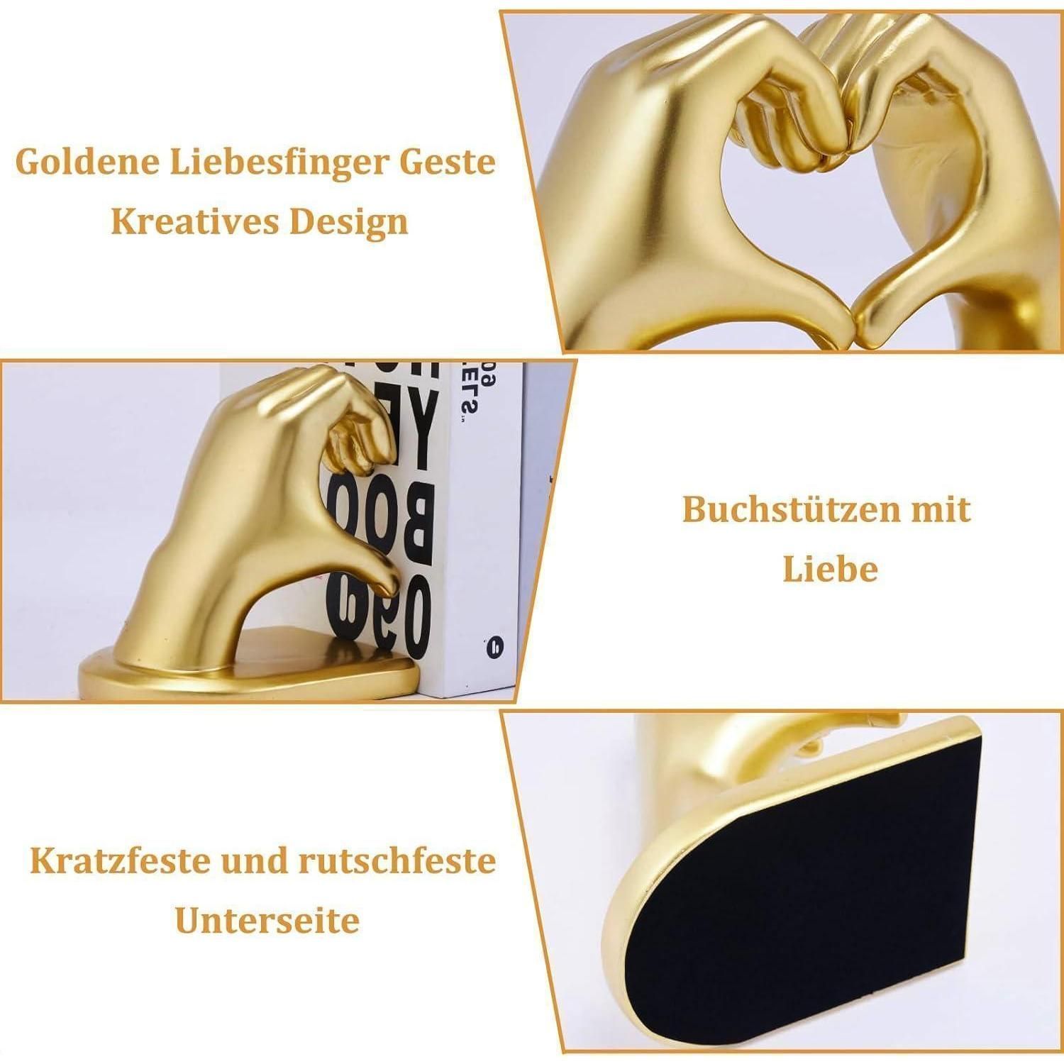 Goldene Herz Hände Deko Buchstützen Skulptur Bücherstopper Regaldekoration