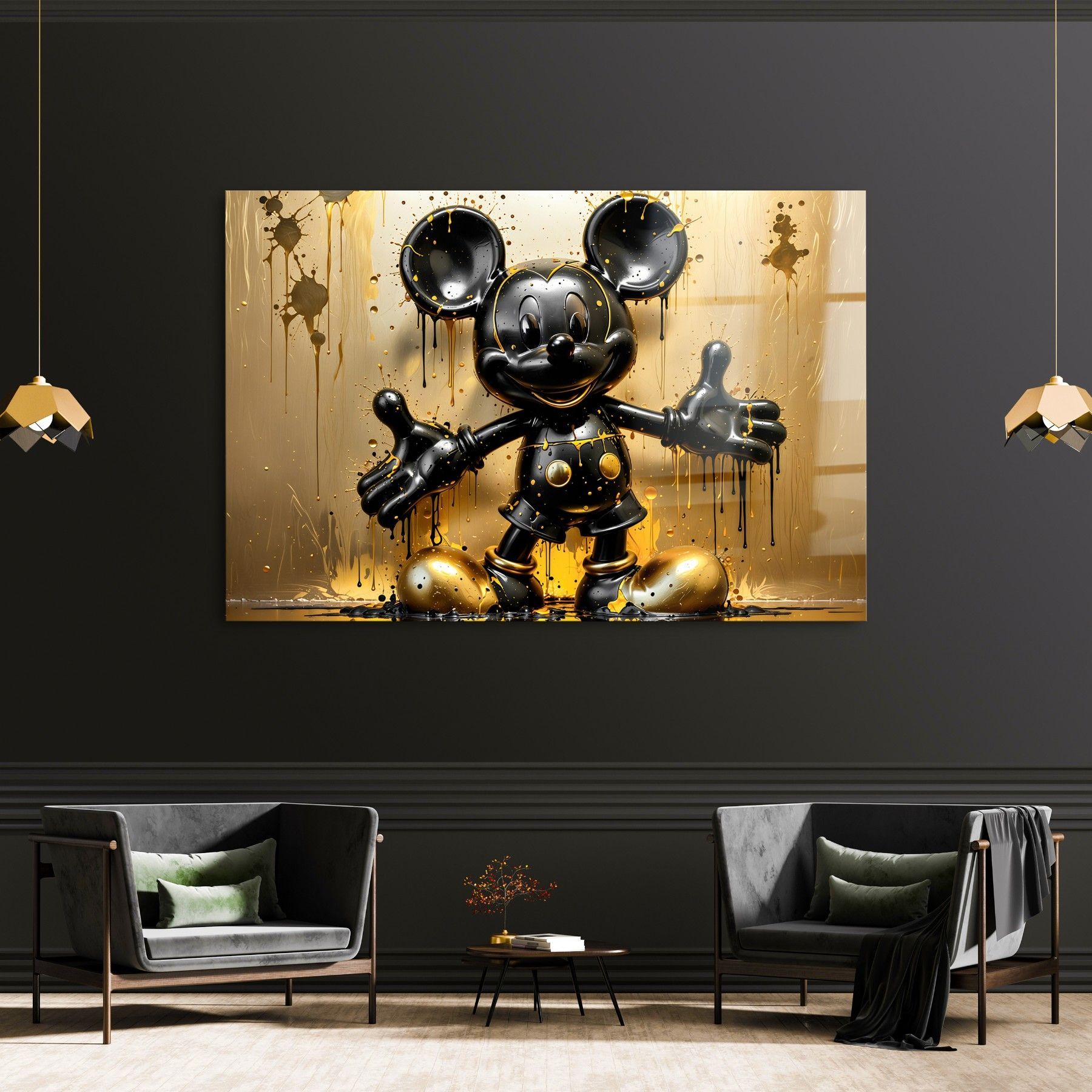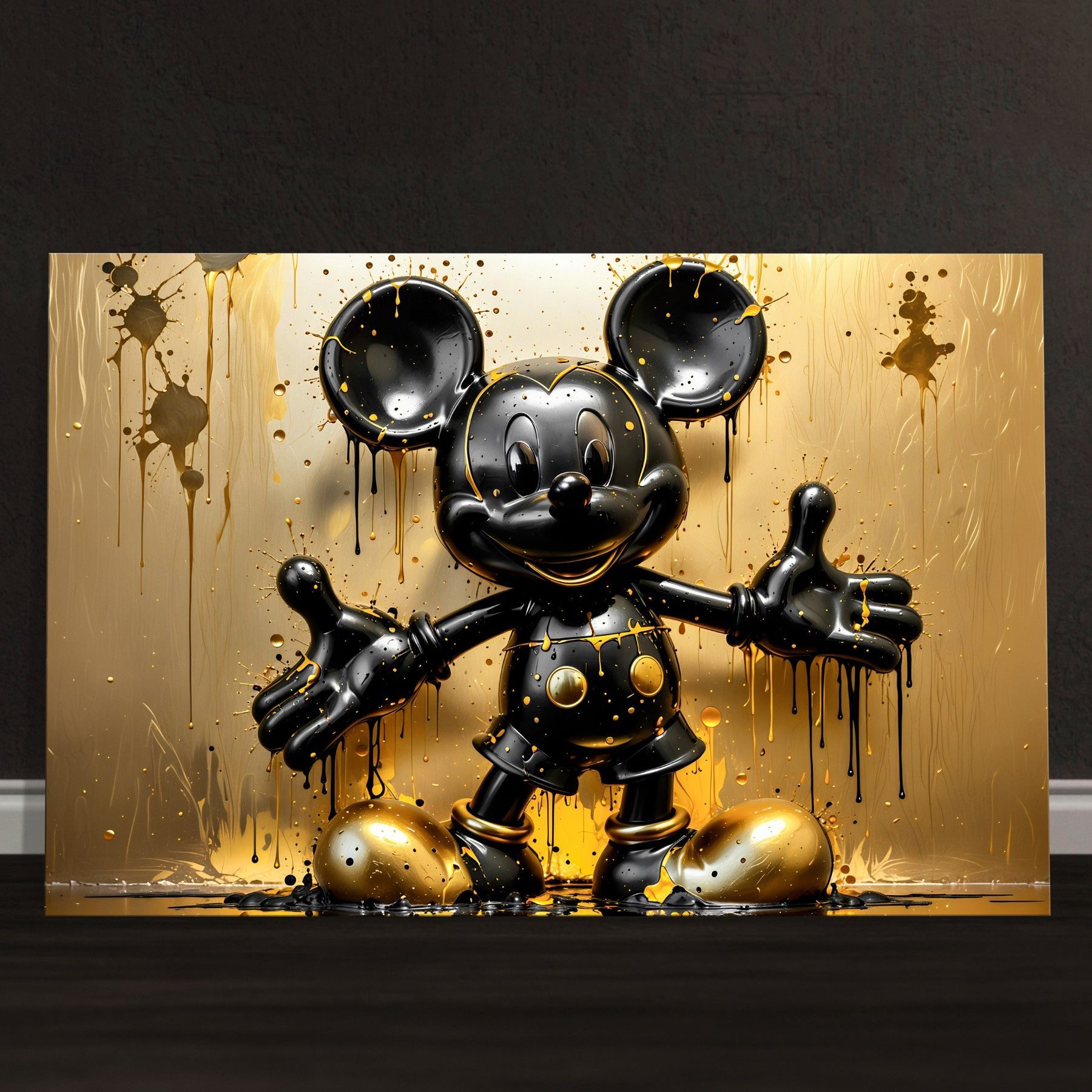 Goldene Micky Maus, Luxus Wandbild Kunst, Leinwand, Acrylglas oder Poster Art Bild
