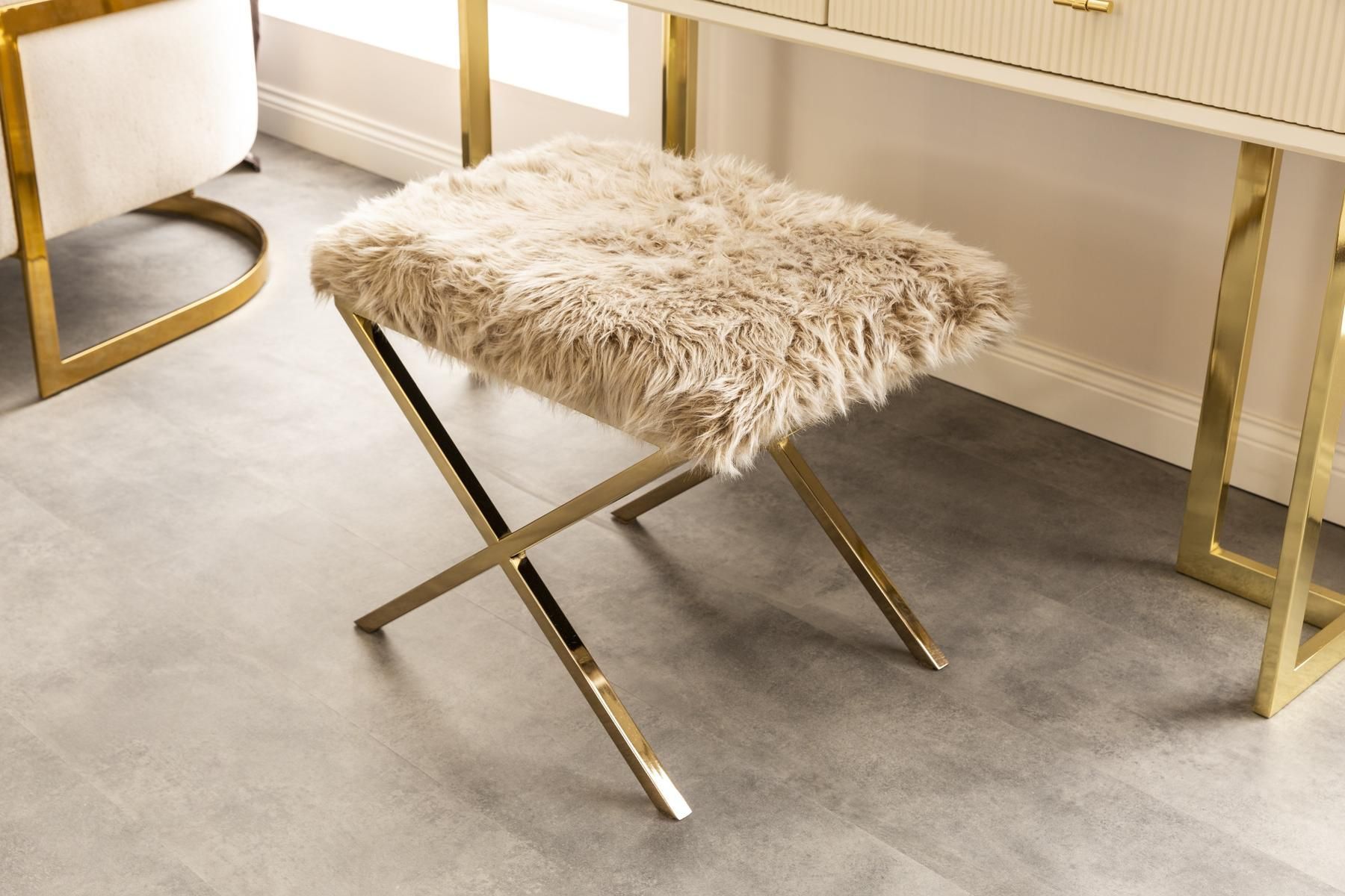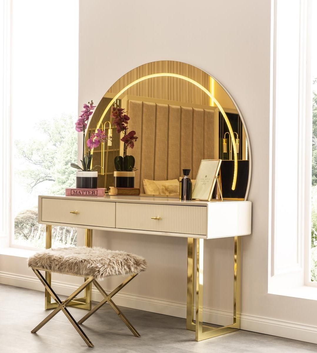 Goldene Schlafzimmer Garnitur Holz Kosmetiktisch Exklusiver Hocker 2tlg