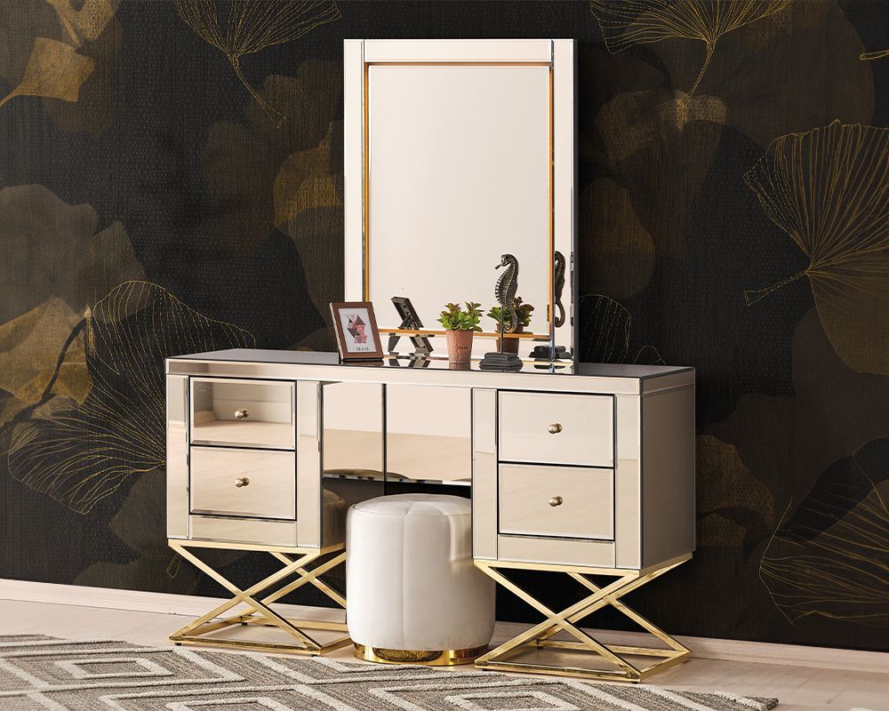 Goldener Edelstahl Schminktisch Moderner Kosmetiktisch Frisierkommode