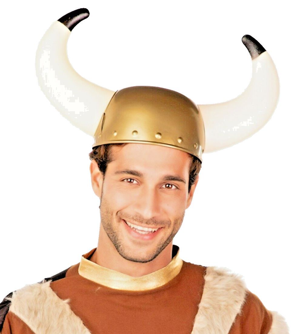goldener Wikingerhelm mit Hörnern Helm zum Kostüm Wikinger Krieger Barbar Material: 100% Kunststoff Farbe: gold/elfenbein Liefermenge: 1 Helm