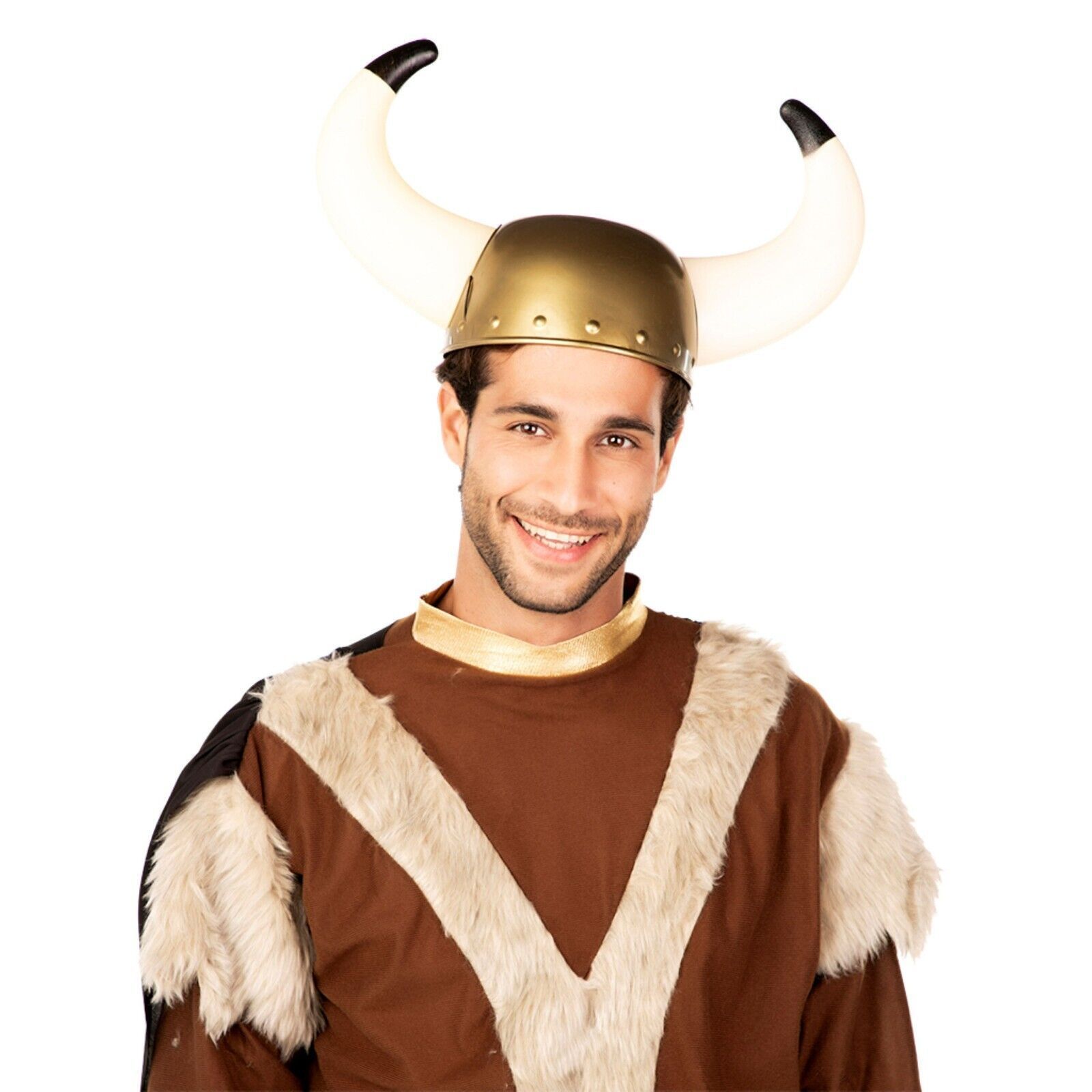 goldener Wikingerhelm mit Hörnern Helm zum Kostüm Wikinger Krieger Barbar