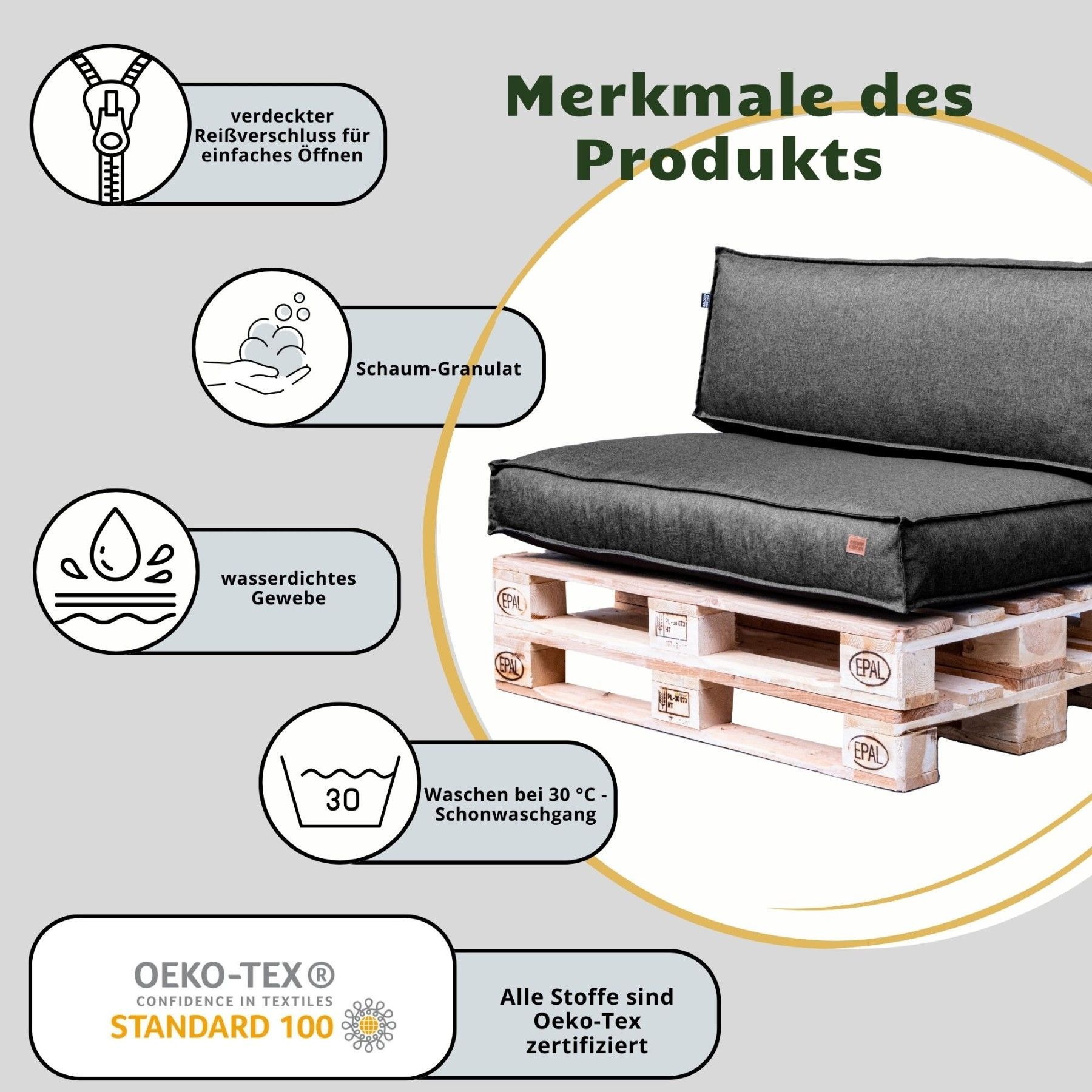 GoldenGroup Palettenkissen - wasserdicht, robust & bequem für Gartenmöbel