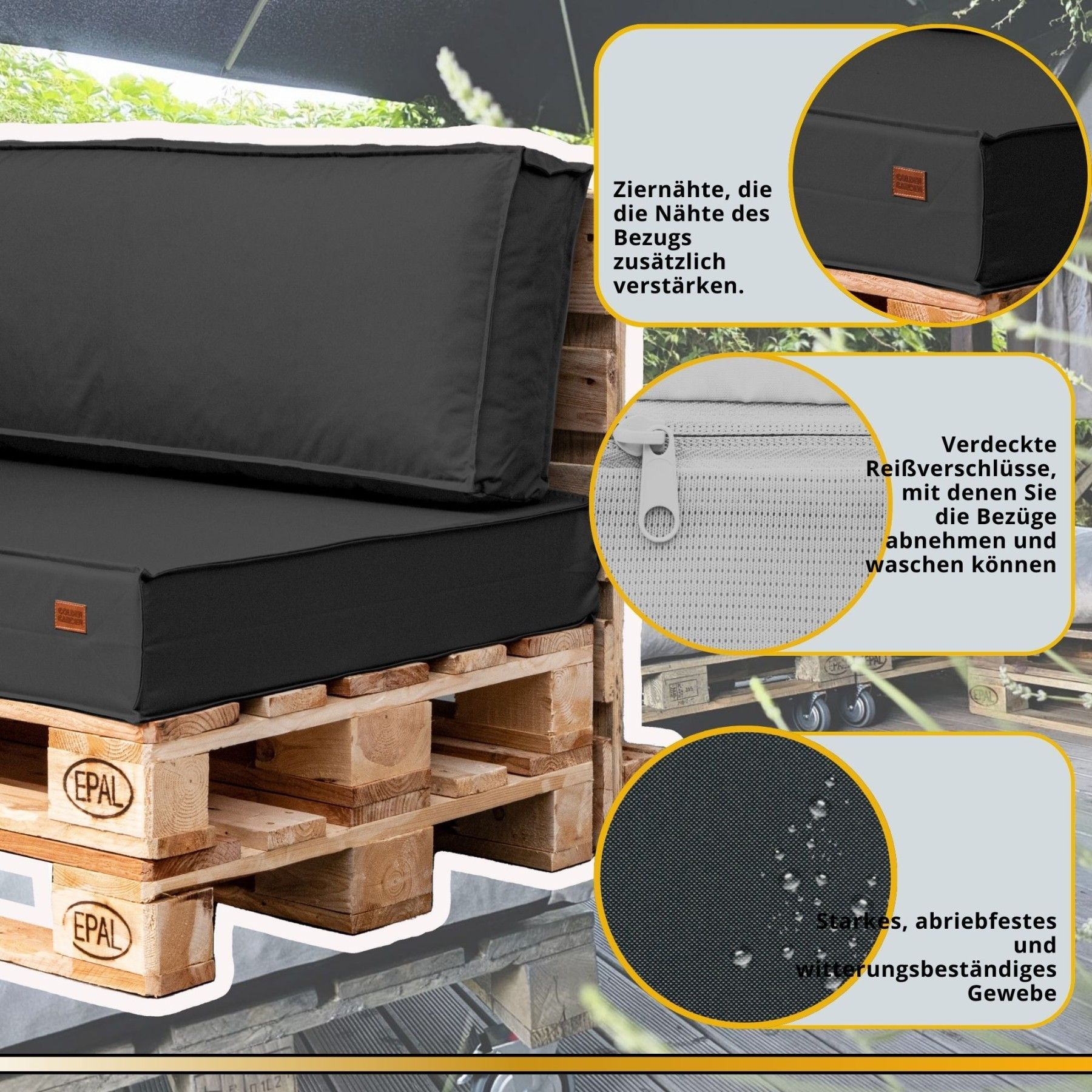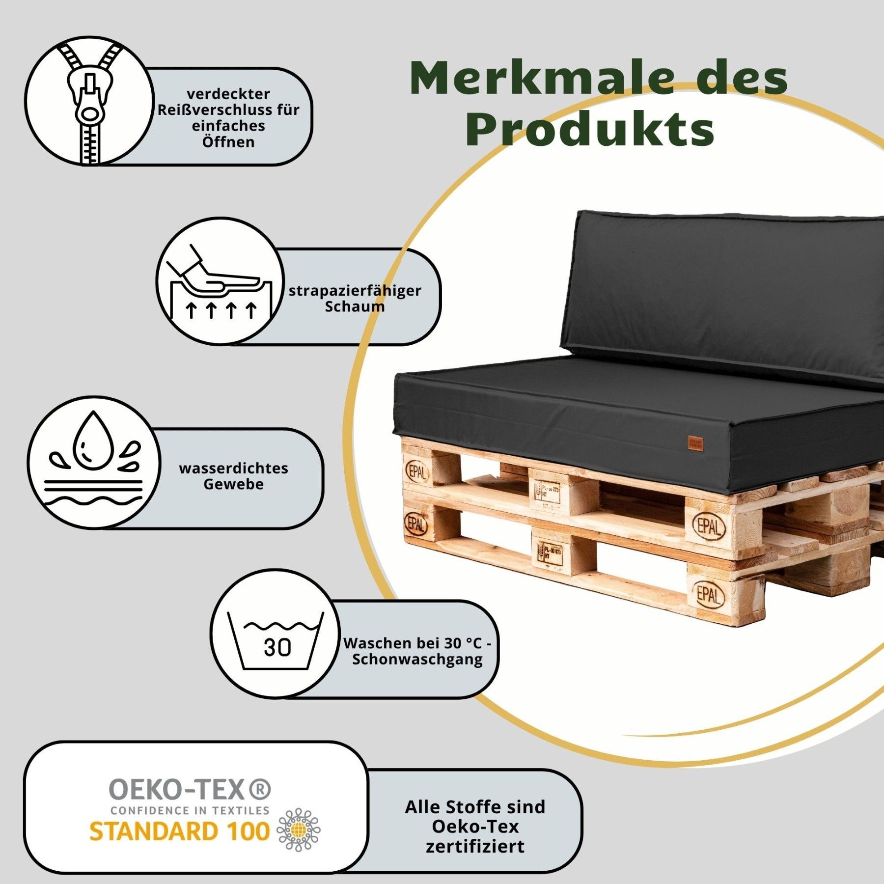 GoldenGroup Wasserdichte Palettenkissen - robust, bequem, ideal für Garten, Terrasse
