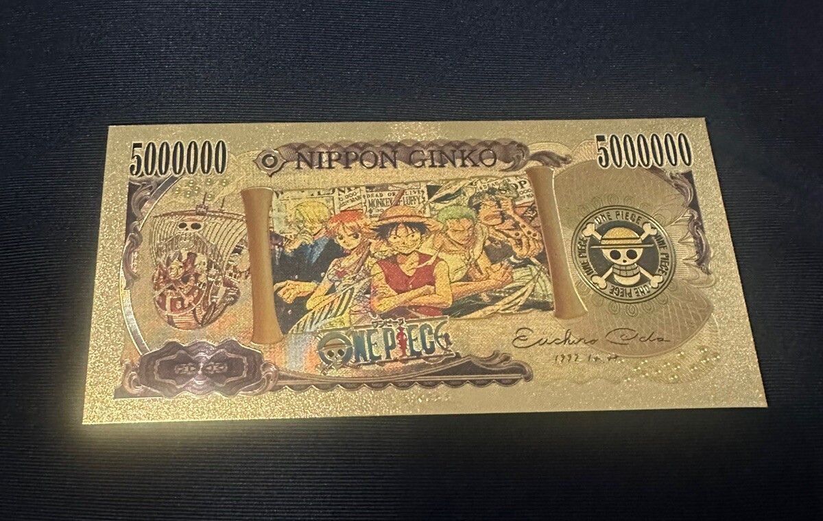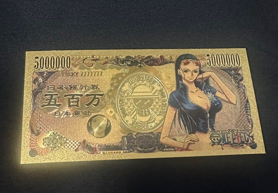 Banknoten - vergoldet Folie - sehr selten O. Piece - Nico Robin Technische Information zum Artikel Material: 24 K vergoldet Größe: original Größe Erhaltung: Neu Verpackung: Folie Das ideale Geschenk oder natürlich auch zum selber sammeln Natürlich handelt es sich nicht um echtes Geld... Mehr