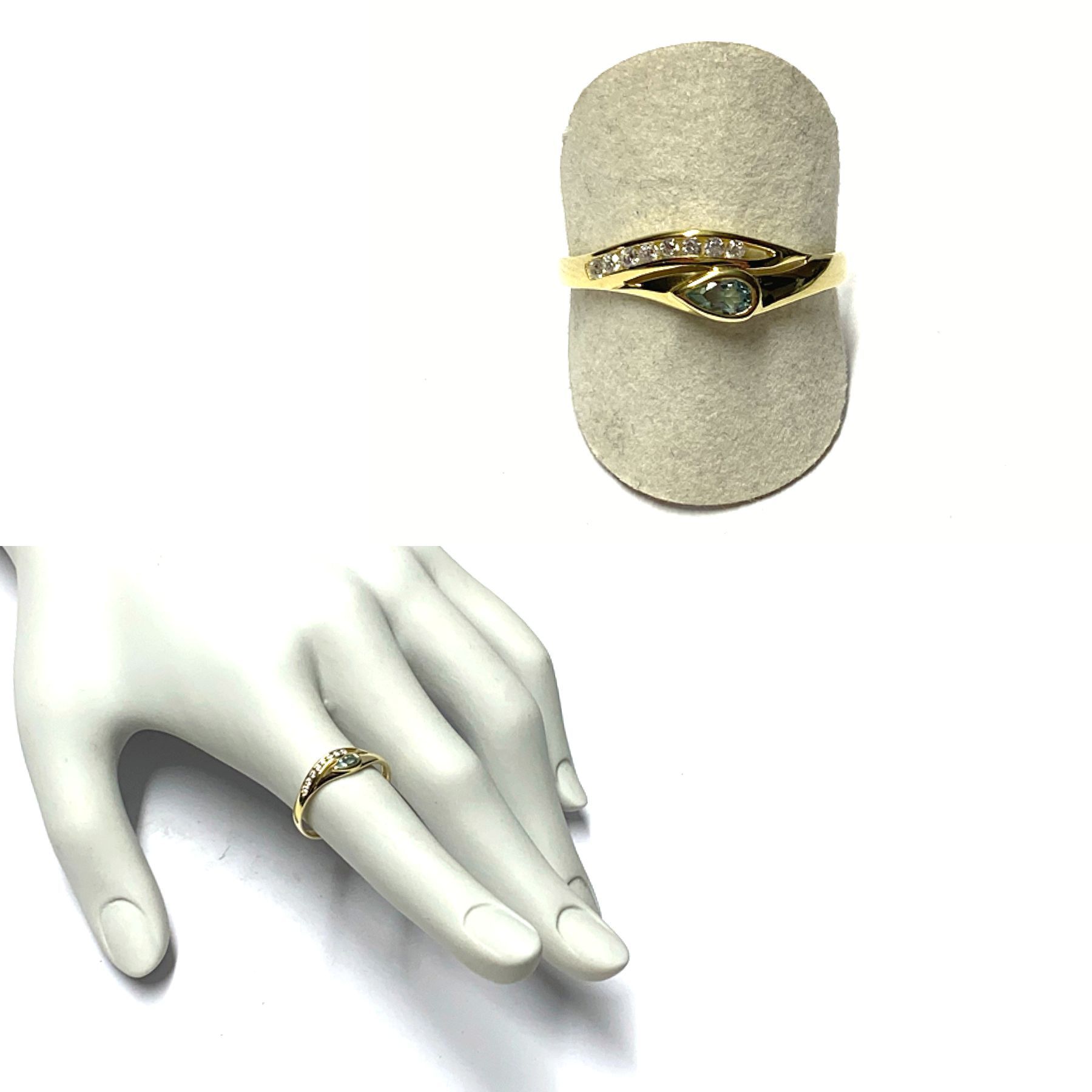 Goldring 333/- Gold Blautopas facettiert tropfen + Zirkonia Schmuckring Ring #66