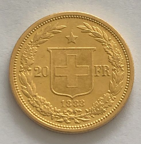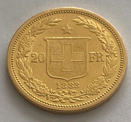 Goldvreneli 1883 Helvetica 20.-Fr. 6,45 Gramm 900 Gold