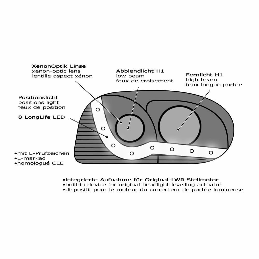 Golf 3 LED Tagfahrlicht Optik Scheinwerfer schwarz. + E. Prüfzeichen SWV01AGXB