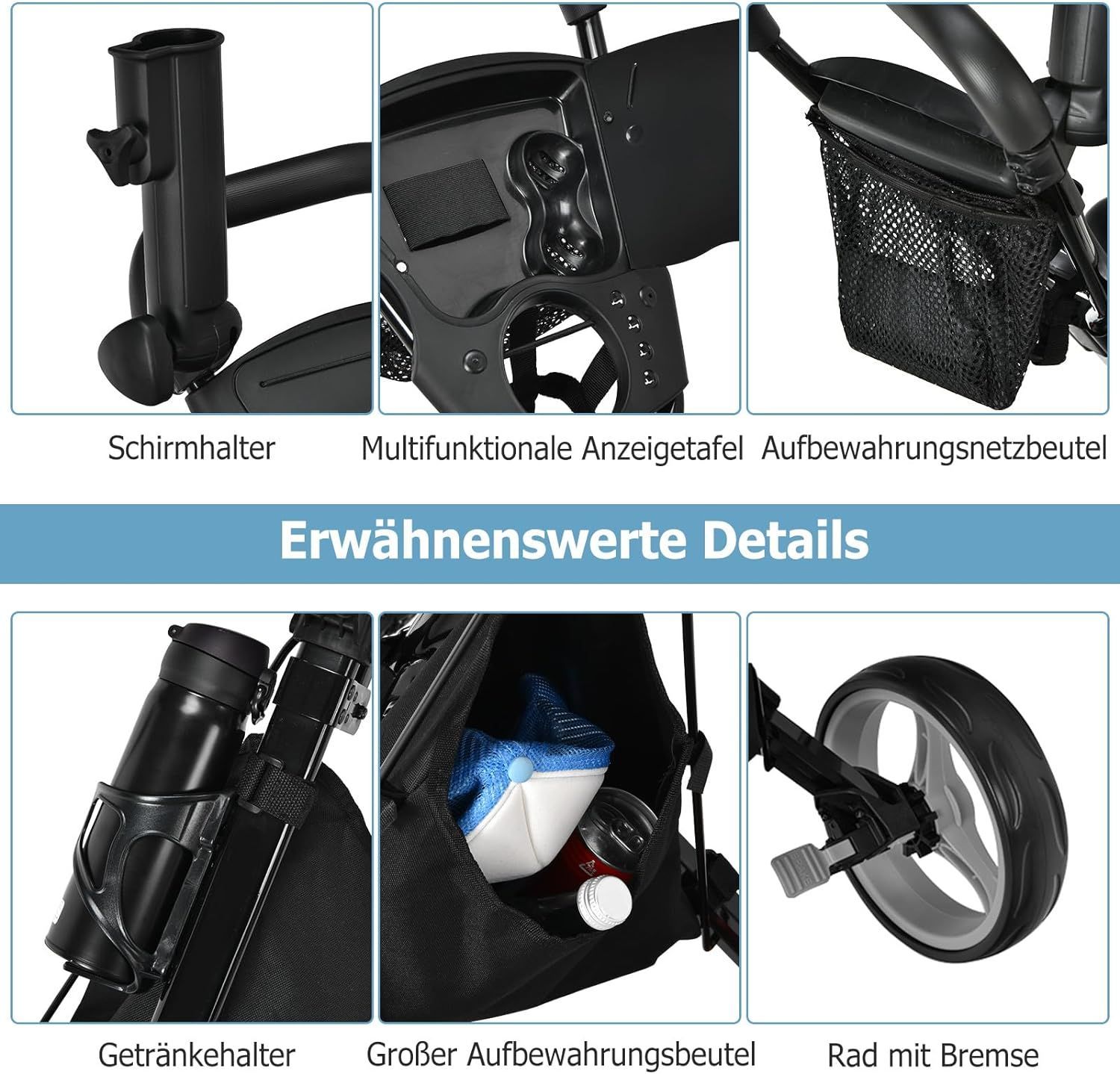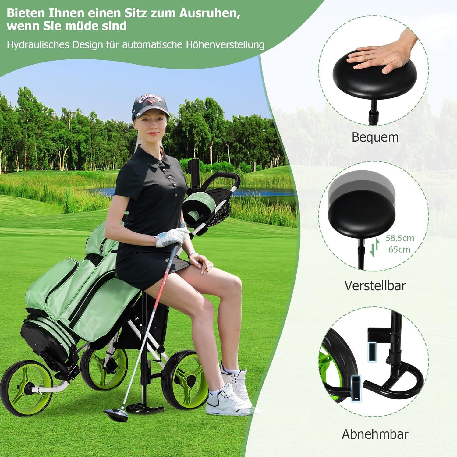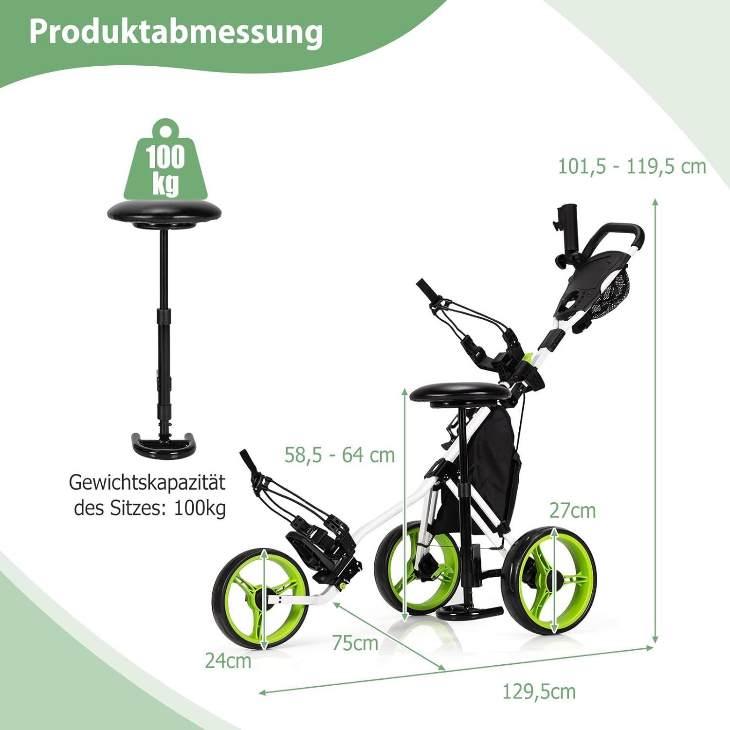 Golf Trolley, 3 Rad Golftrolley, Golfwagen Golf klappbar, Golfcaddy Golf Push Cart