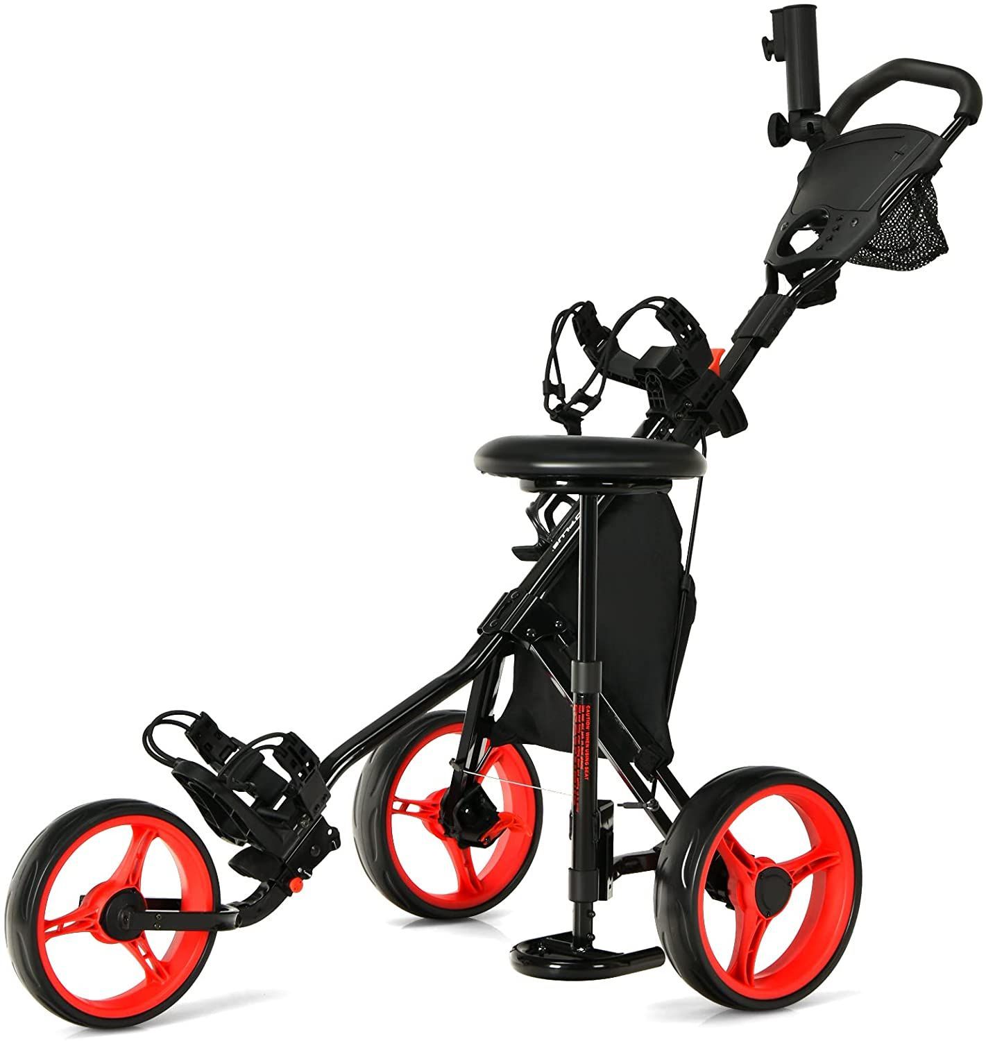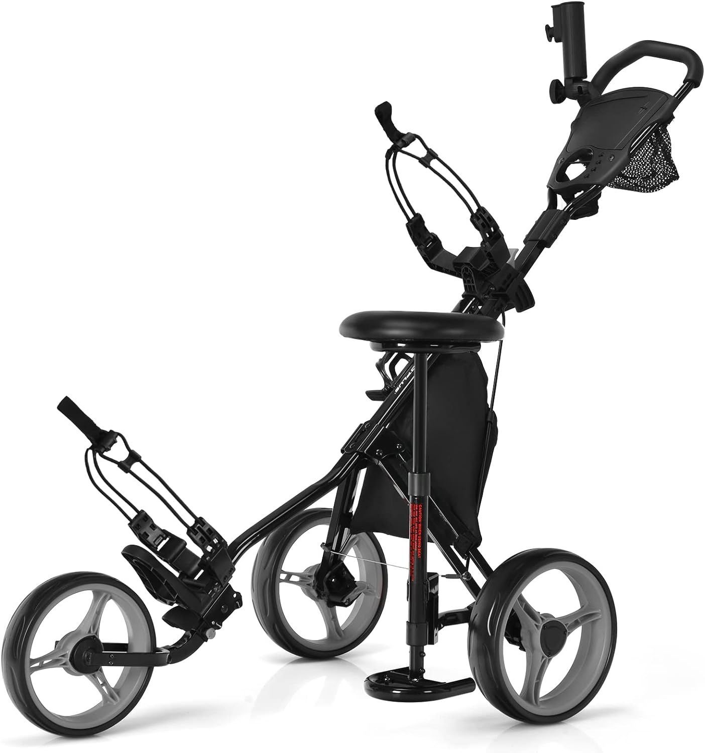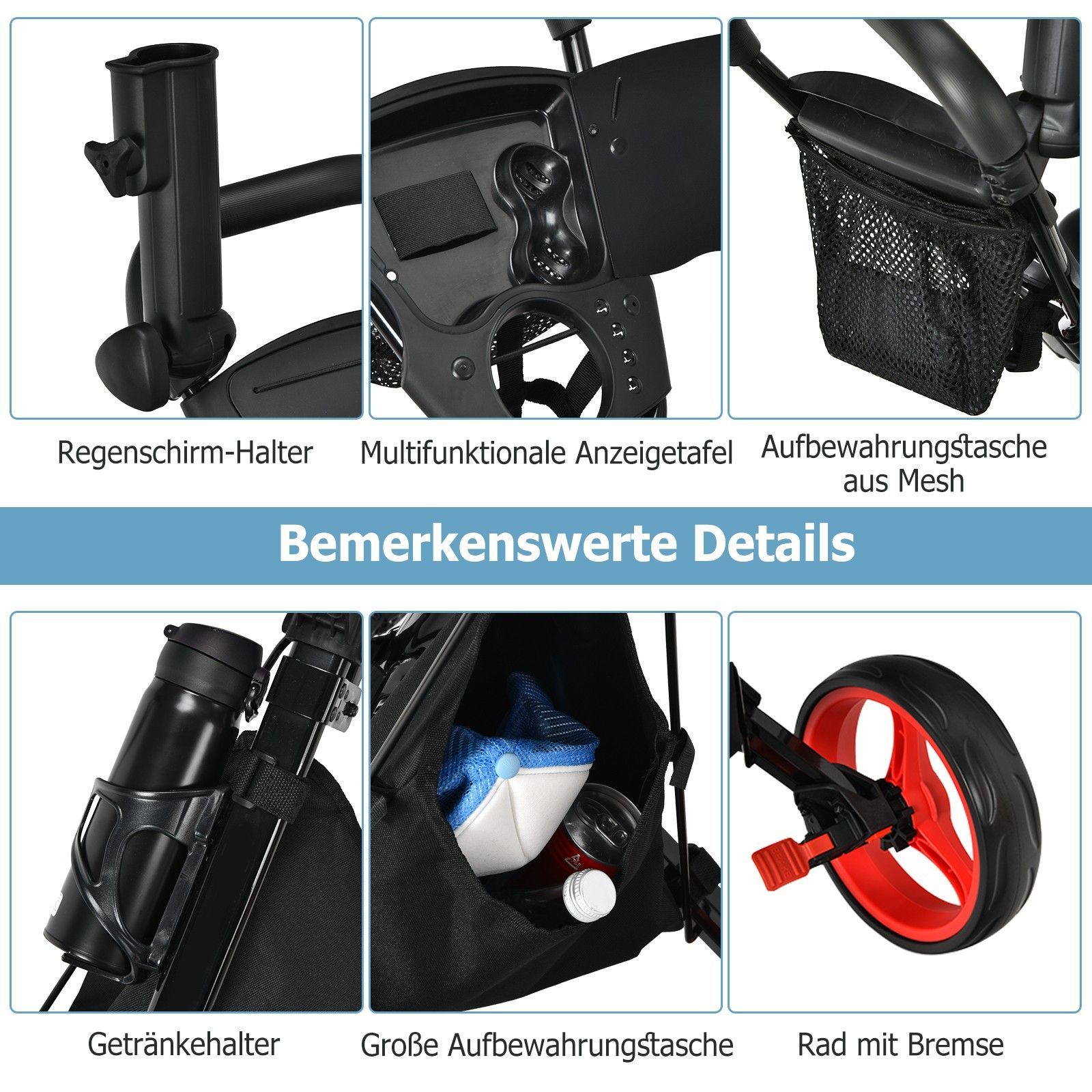 Golf Trolley, 3 Rad Golftrolley, Golfwagen Golf klappbar, Golfcaddy Golf Push Cart
