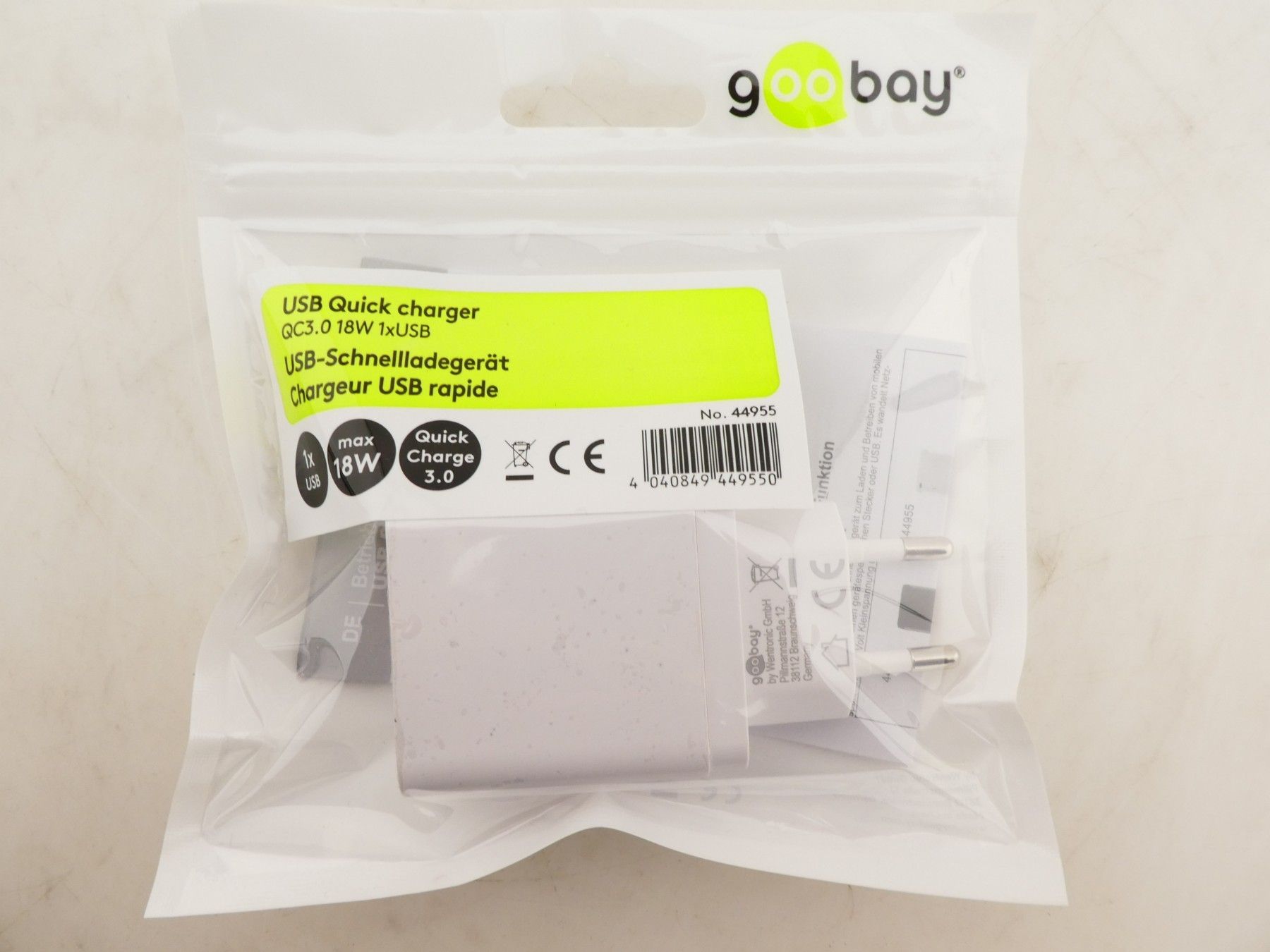 Goobay Goobay 1x USB Schnellladegerät QC3.0 / 18 Watt / Weiß / 44955 (21-11-12-4)