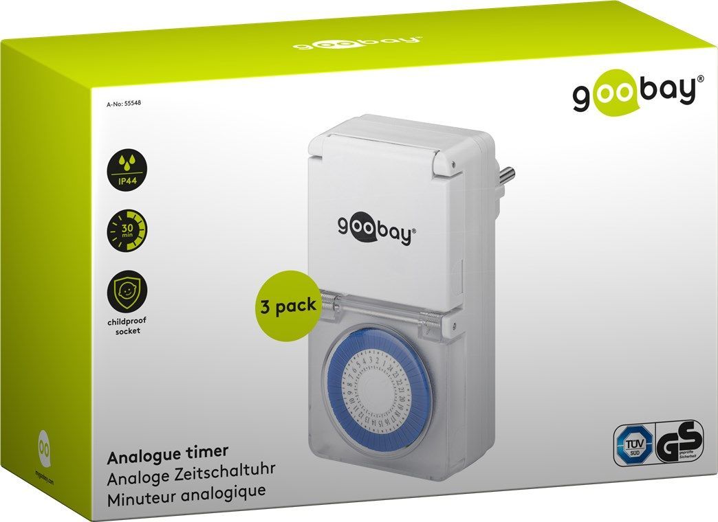 Goobay Goobay 3er-Set: Analoge Zeitschaltuhr IP44, 3 Stück im Karton - Außenbereich geeignet
