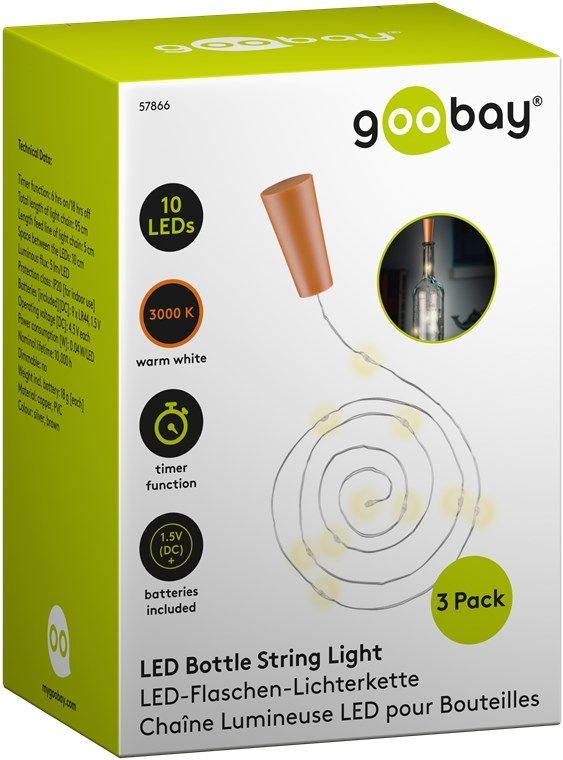 goobay goobay 3x 10er LED-Flaschen-Lichterkette, inkl. Timer für Glasflaschen Silber/Hellbra