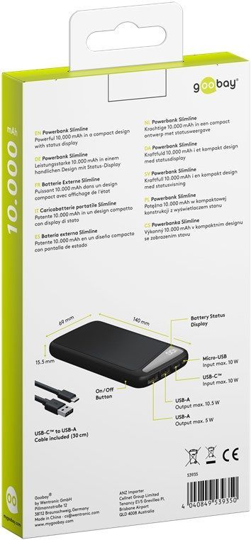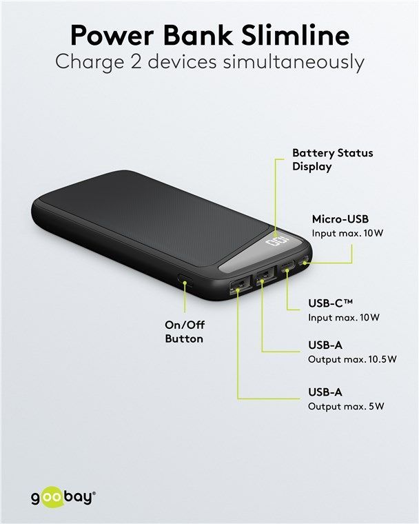 Goobay Goobay 53935 Powerbank Slimline 10.000 mAh Leistungsstarke 10.000 mAh mit Status-Disp
