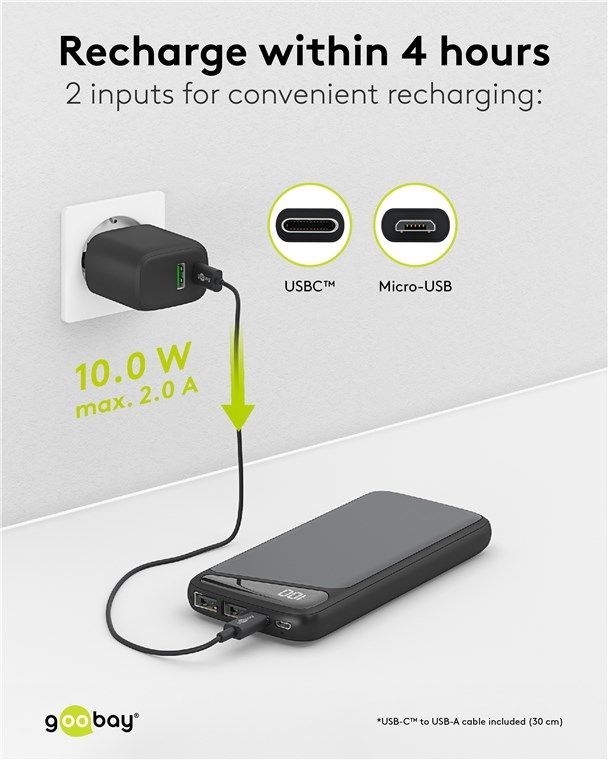 • Goobay 53939 Schnelllade-Powerbank 20.000 mAh (USB-C™ PD, QC 3.0) Leistungsstarke