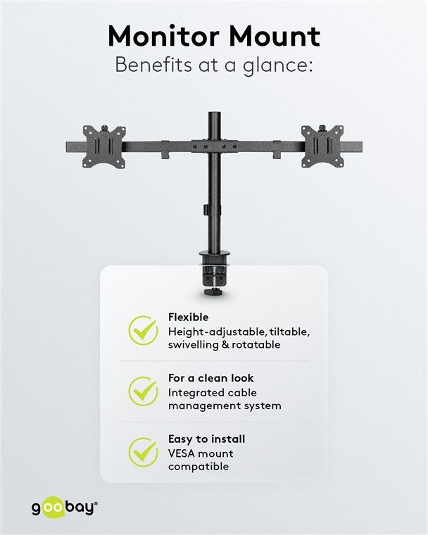 Goobay Goobay 59394 Doppel-Monitorhalterung Fix für Monitore zwischen 17 und 32 Zoll (43-81