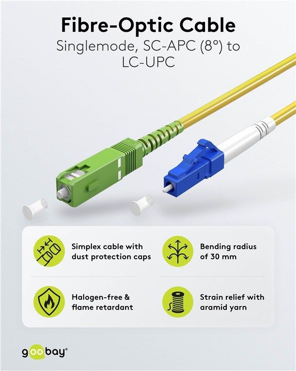 Goobay Goobay 59649 Glasfaserkabel (FTTH), Singlemode (OS2) Yellow, Gelb (Simplex), 2 m Lich