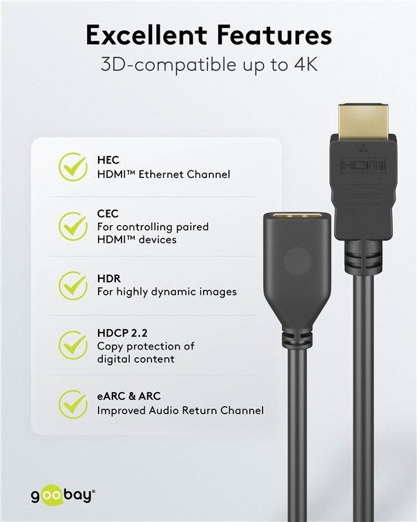 Goobay Goobay 61307 Standard High-Speed-HDMI™-Verlängerungskabel mit Ethernet, 1 m, Schwarz