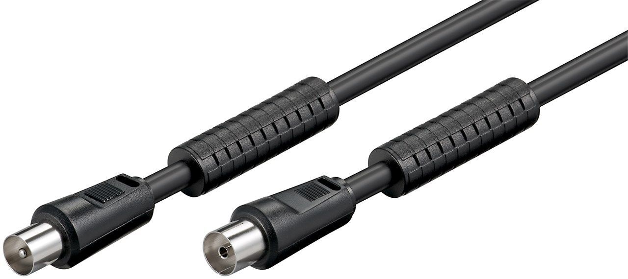 goobay Antennenkabel Koax Stecker/Kupplung mit Ferrite schwarz 2,5 m