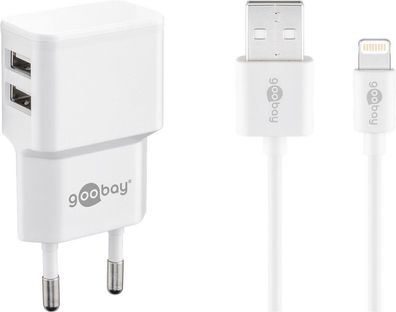 goobay Apple Lightning Dual Ladeset 2,4 A Netzteil mit 2 x USB Buchse und Apple Light