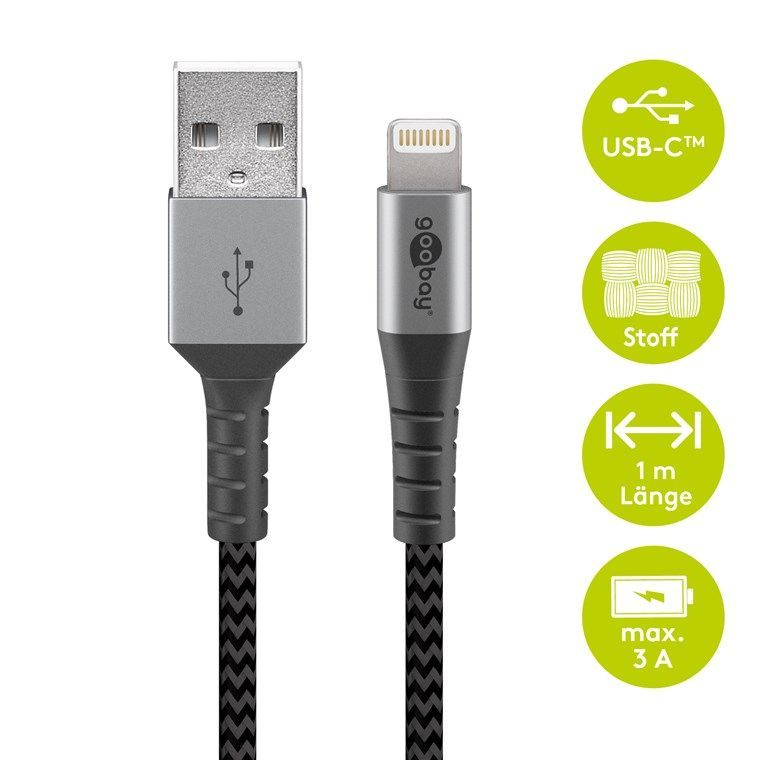 goobay goobay Lightning auf USB-A Textilkabel mit Metallsteckern space grau/silber 1 m (1er