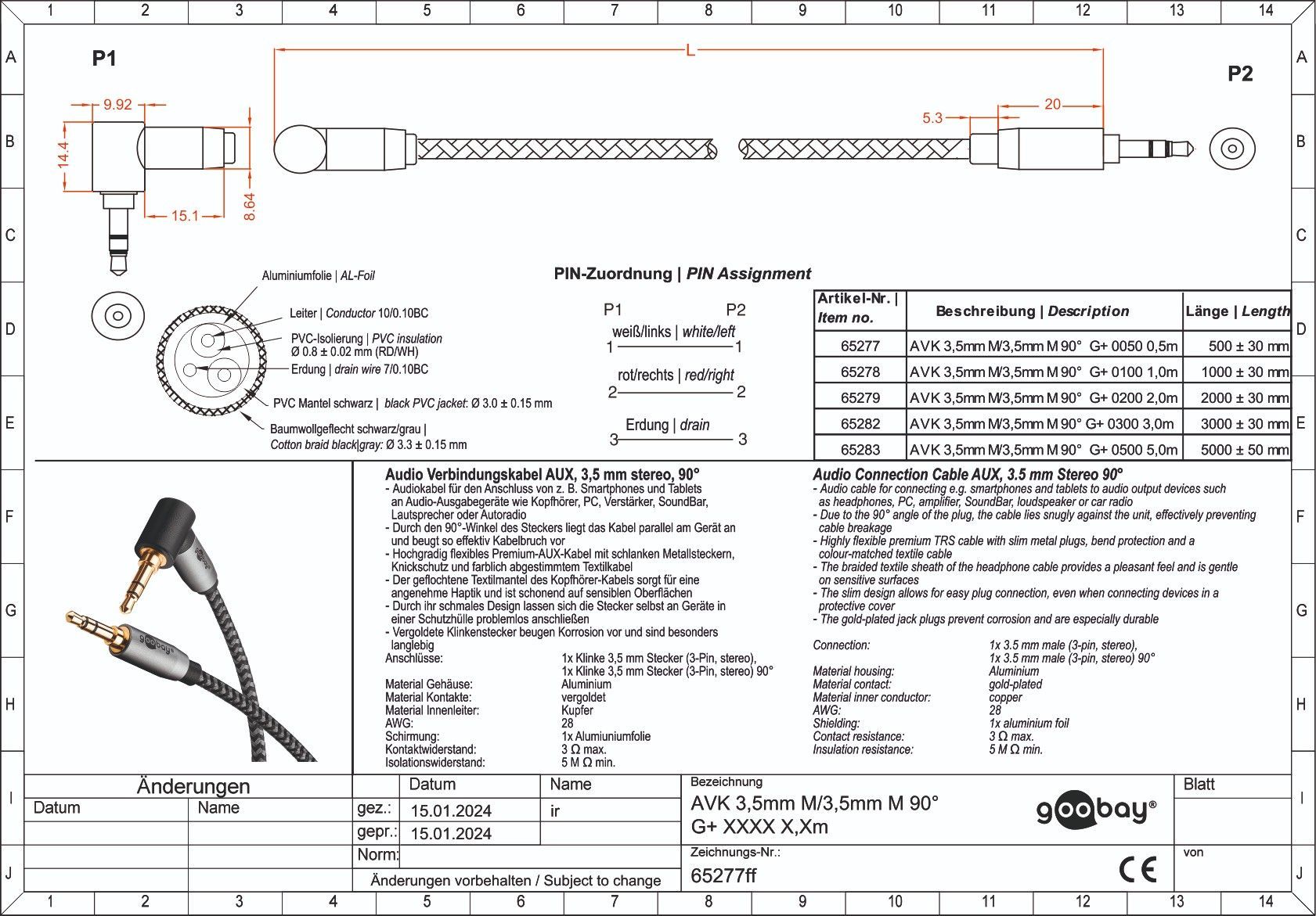 Goobay Goobay Plus / Audio-Verbindungskabel / 3,5mm Klinke / 1x Winkelstecker / Gewebe