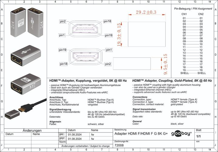 Goobay Goobay Plus HDMI-Kupplung / Adapter / 8K / UHD / 3D / HDR / HEC / CEC / eARC