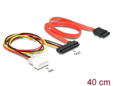 • Slimline SATA Kabel, Slimline SATA Stecker 13pol. (7 + 6) zu SATA + Strom, 0,4m