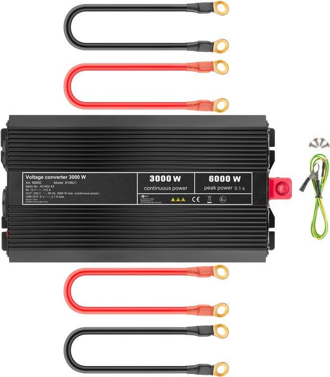 goobay goobay Spannungswandler 3000 W wandelt 12 V DC in 230 V AC um schwarz (Bulk)