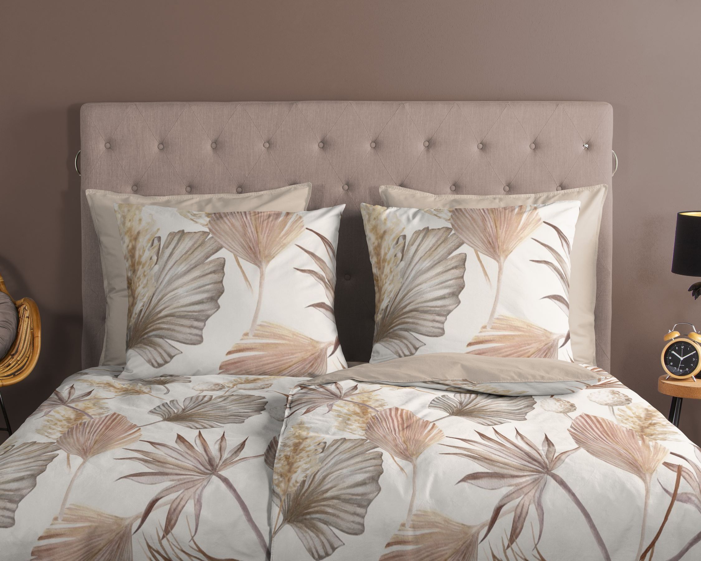Good Morning Baumwoll-Bettwäsche 135x200 Vince Blätter Wende weiß beige 31030