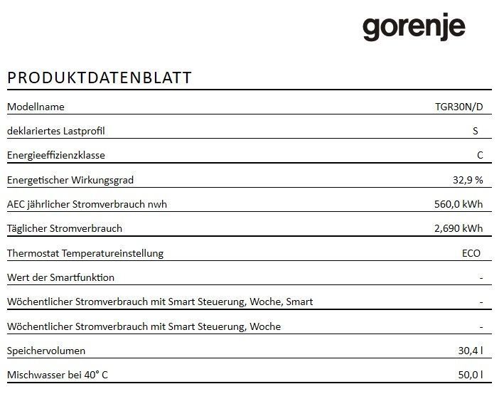 GORENJE Gorenje Boiler TGR30 N/D 30 Liter Druckfest Thermostat ECO Warmwasser