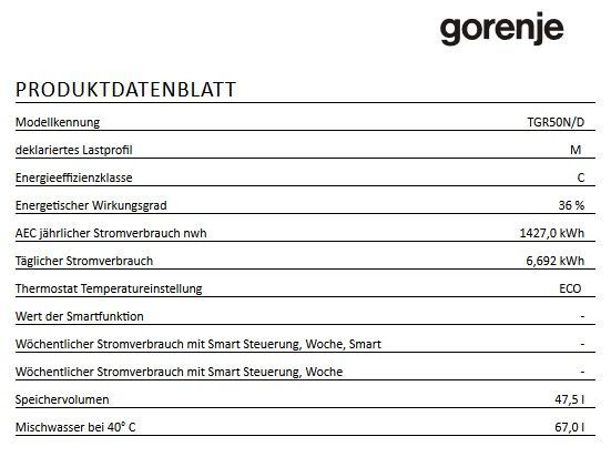 GORENJE Gorenje Boiler TGR50 N/D 50 Liter, Warmwasserbereiter, Druckfest Thermostat ECO