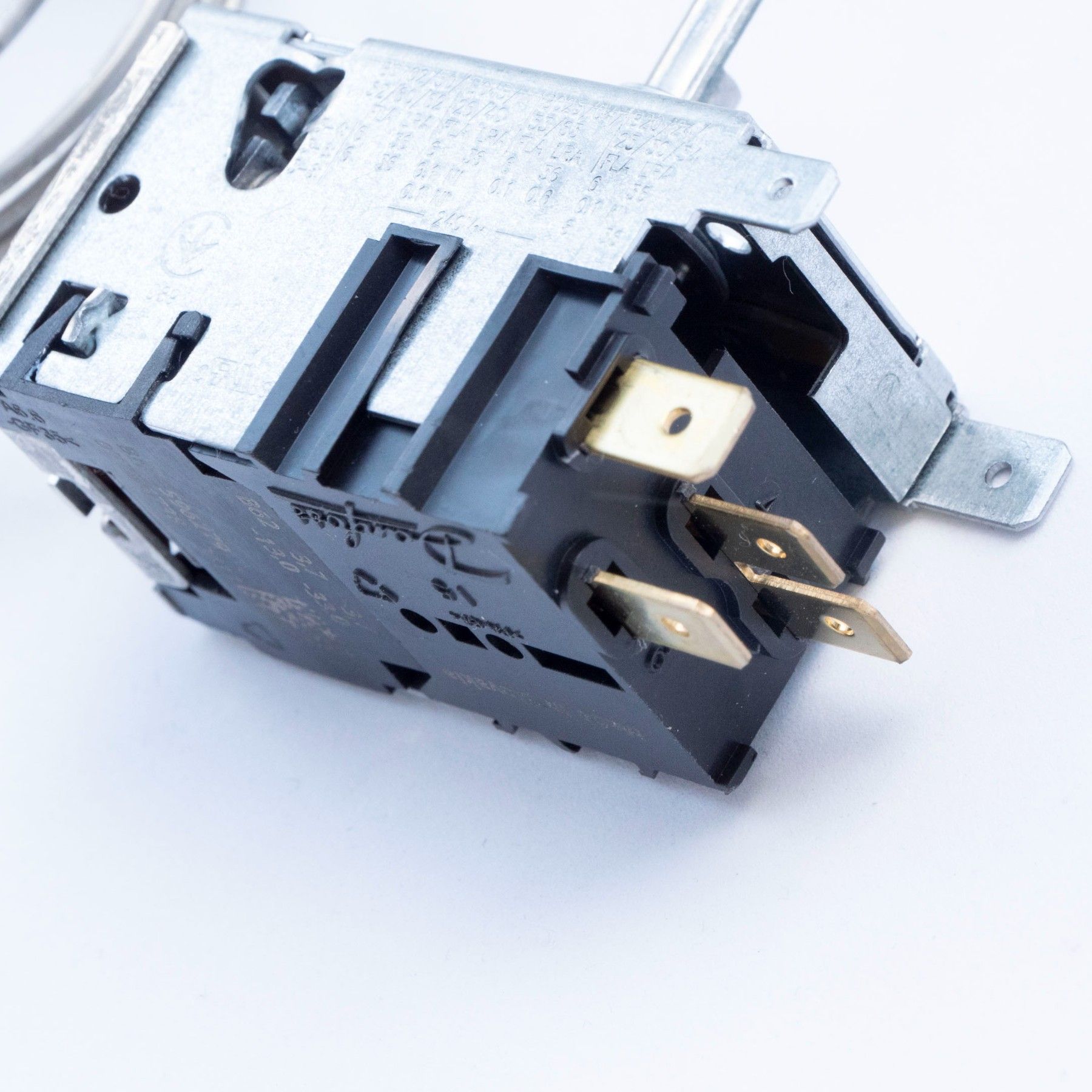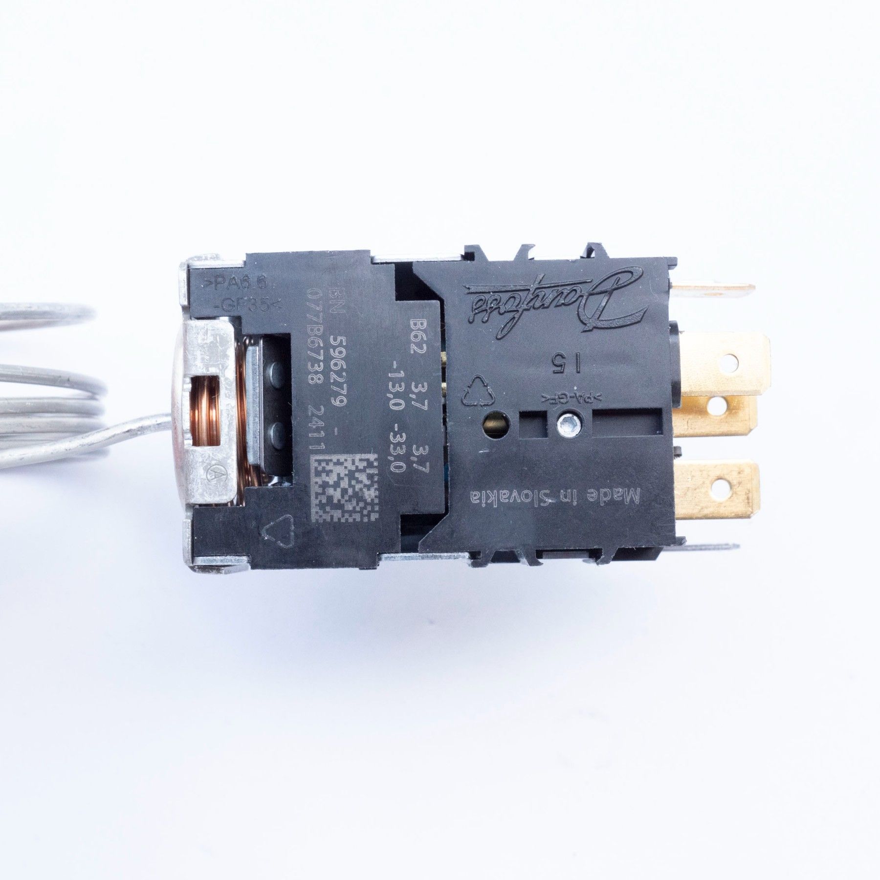 Original! Kühlthermostat für Kühlgeräte mit automatischer Abtauung Lieferumfang: 1 Stück Artikel-Merkmale: Originalteil Gorenje 596279 Kapillarrohr-Länge: 800 mm Anschlüsse: 6,3 mm AMP Kühlthermostat für Kühlgeräte mit automatischer Abtauung Temperaturen: kalt aus: -33,0° C warm aus: -13,0°