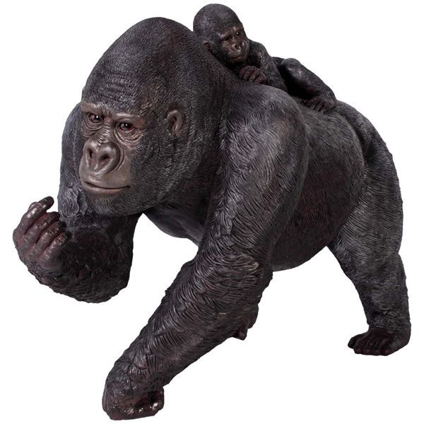 Gorilla Weibchen mit Baby lebensgroß 88cm für draußen aus GFK